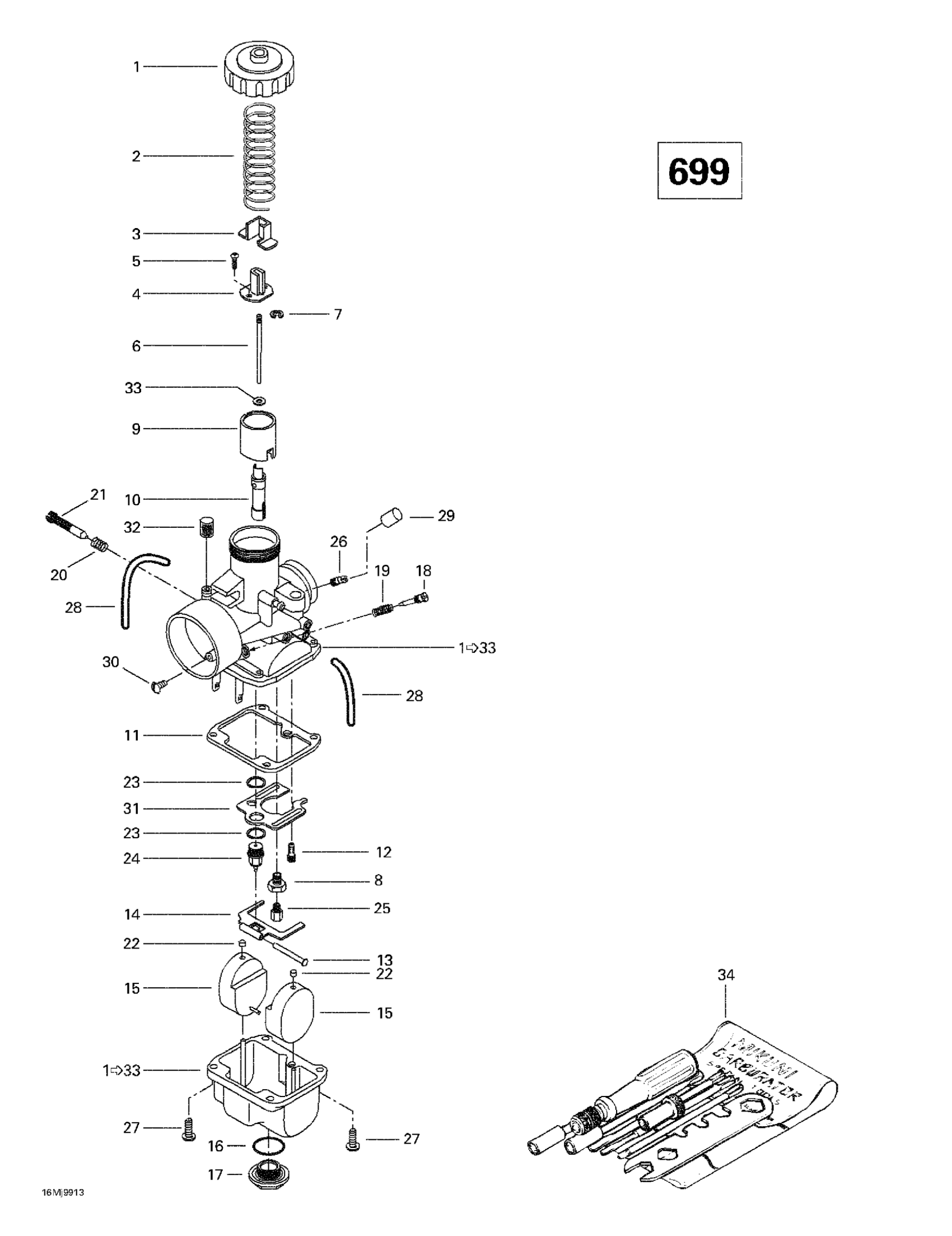 Ski-Doo Grand Touring 700, 1999 Carburetors (699) Diagram