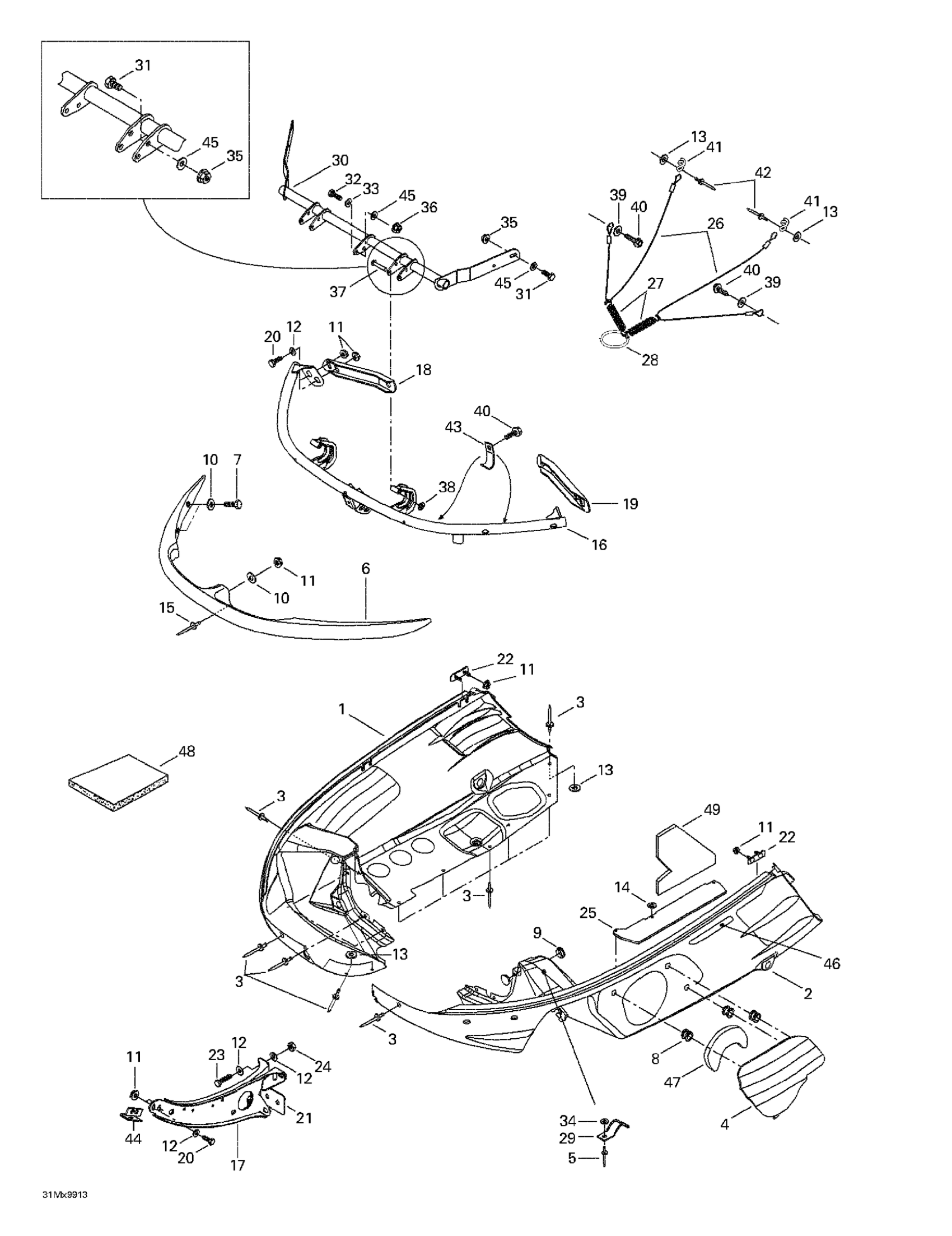 Ski-Doo Grand Touring 700, 1999 Bottom Pan Diagram