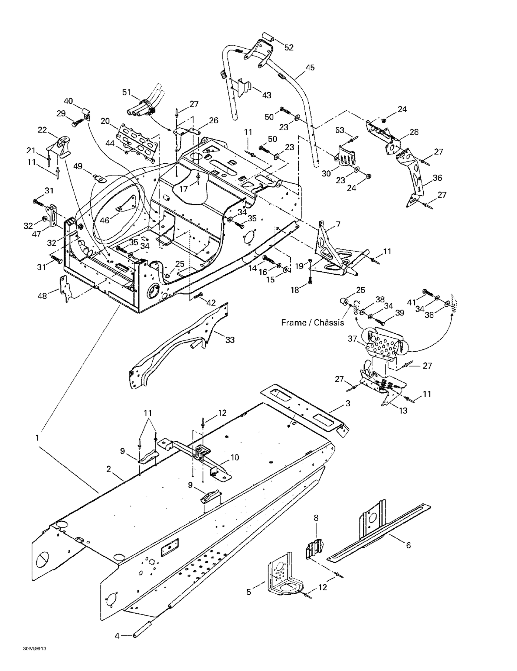 Ski-Doo Grand Touring 700, 1999 Frame And Accessories Diagram
