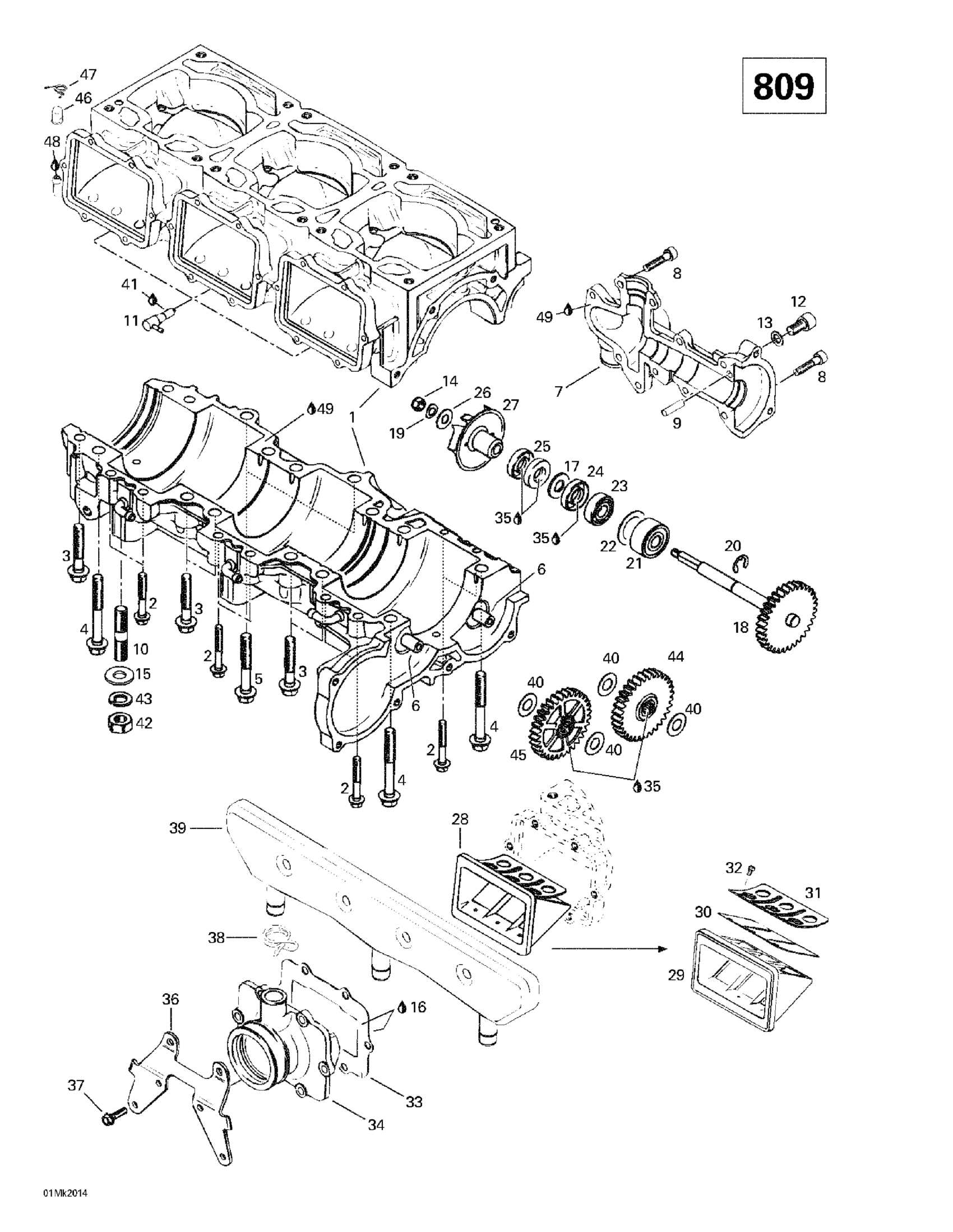 01- Crankcase, Reed Valve, Water Pump (809)