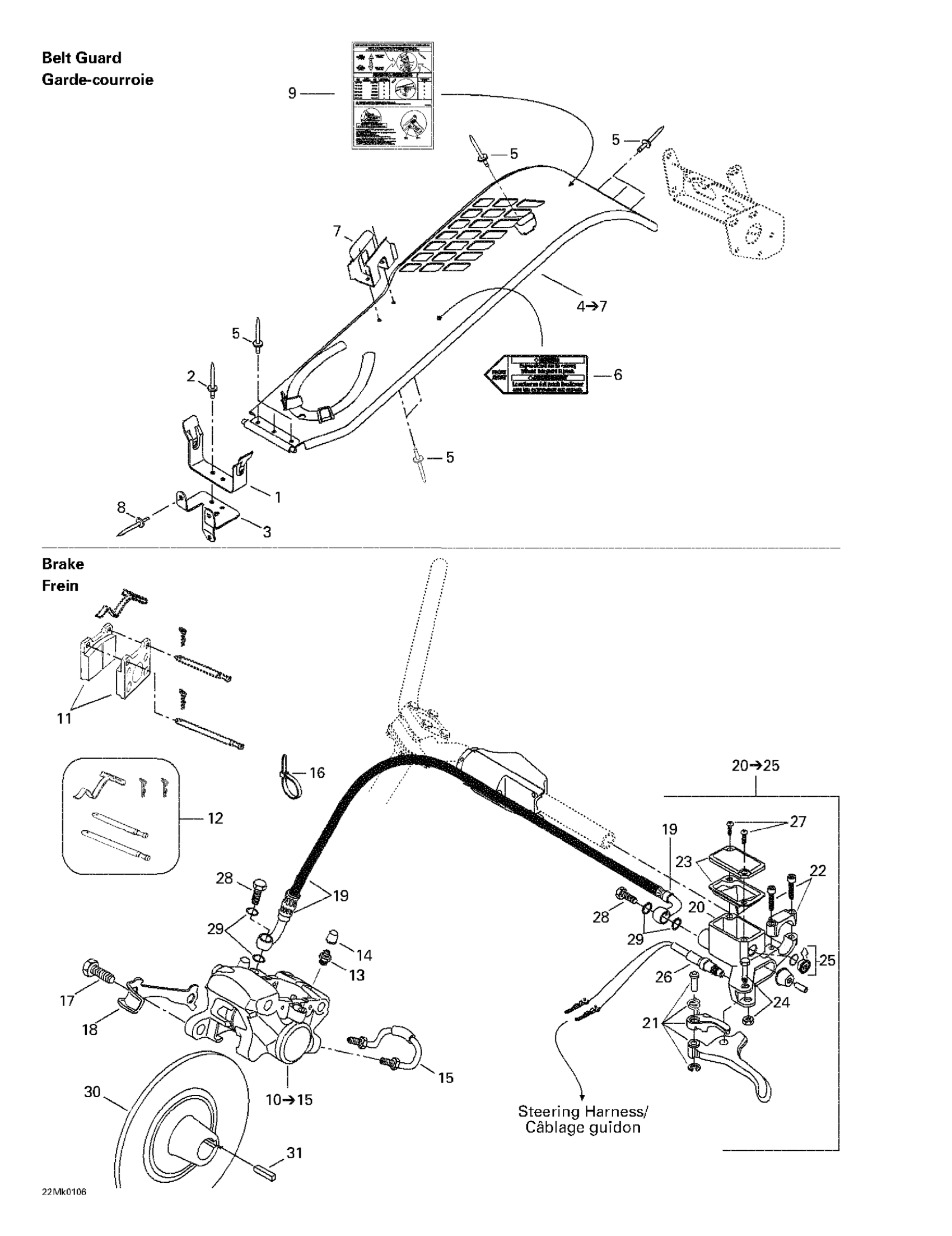 Ski-Doo Grand Touring 800 SE, 2001 Hydraulic Brake And Belt Guard Diagram