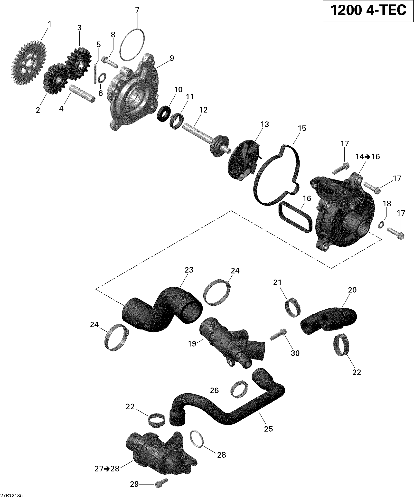 Ski-Doo Grand Touring LE & SE 1200 XR, 2012 Engine Cooling _2-3 Diagram