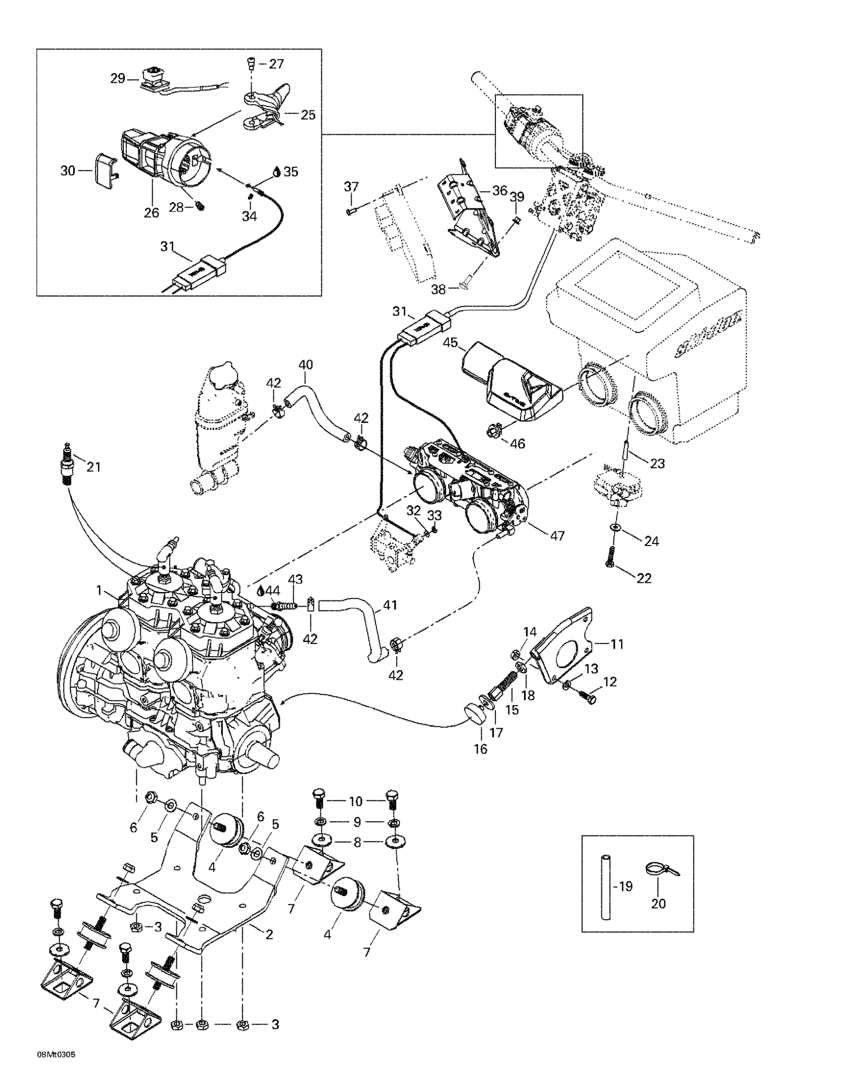 Ski-Doo Grand Touring SE 800 SDI, 2003 Engine Support, Dpm, Throttle Handle Diagram
