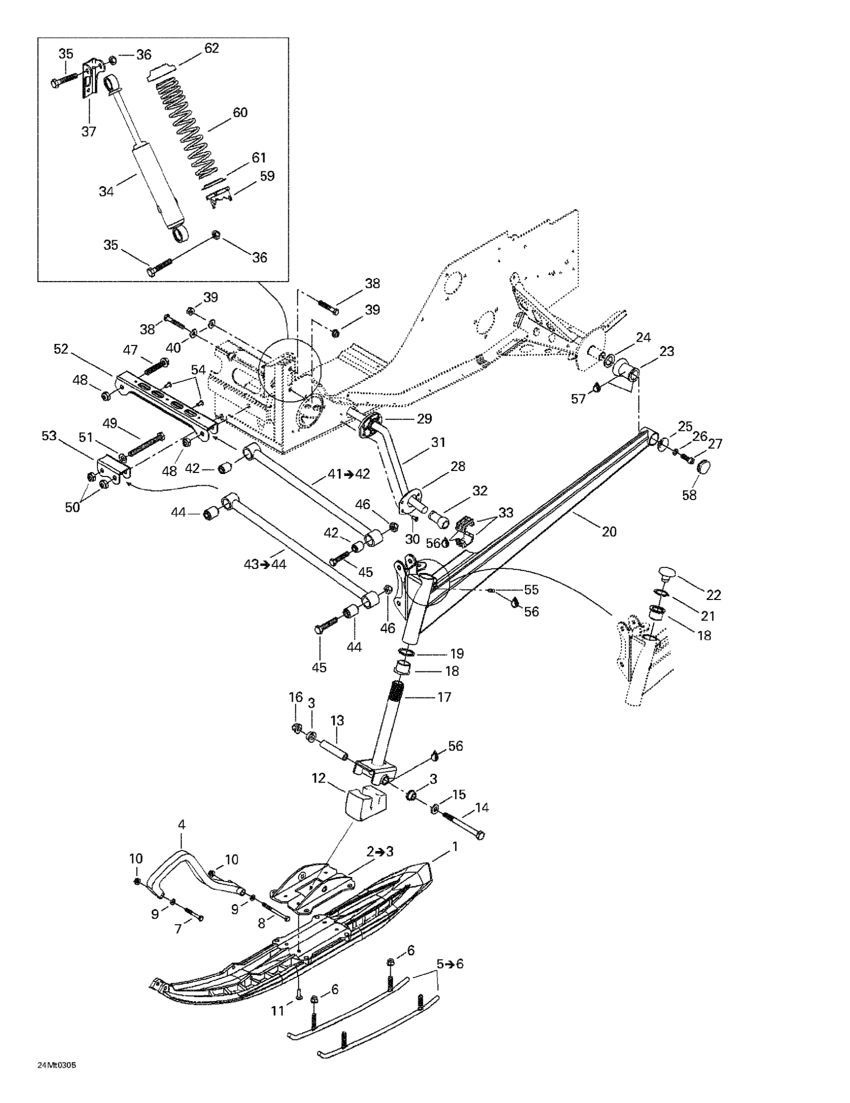 Ski-Doo Grand Touring SE 800 SDI, 2003 Front Suspension And Ski Diagram