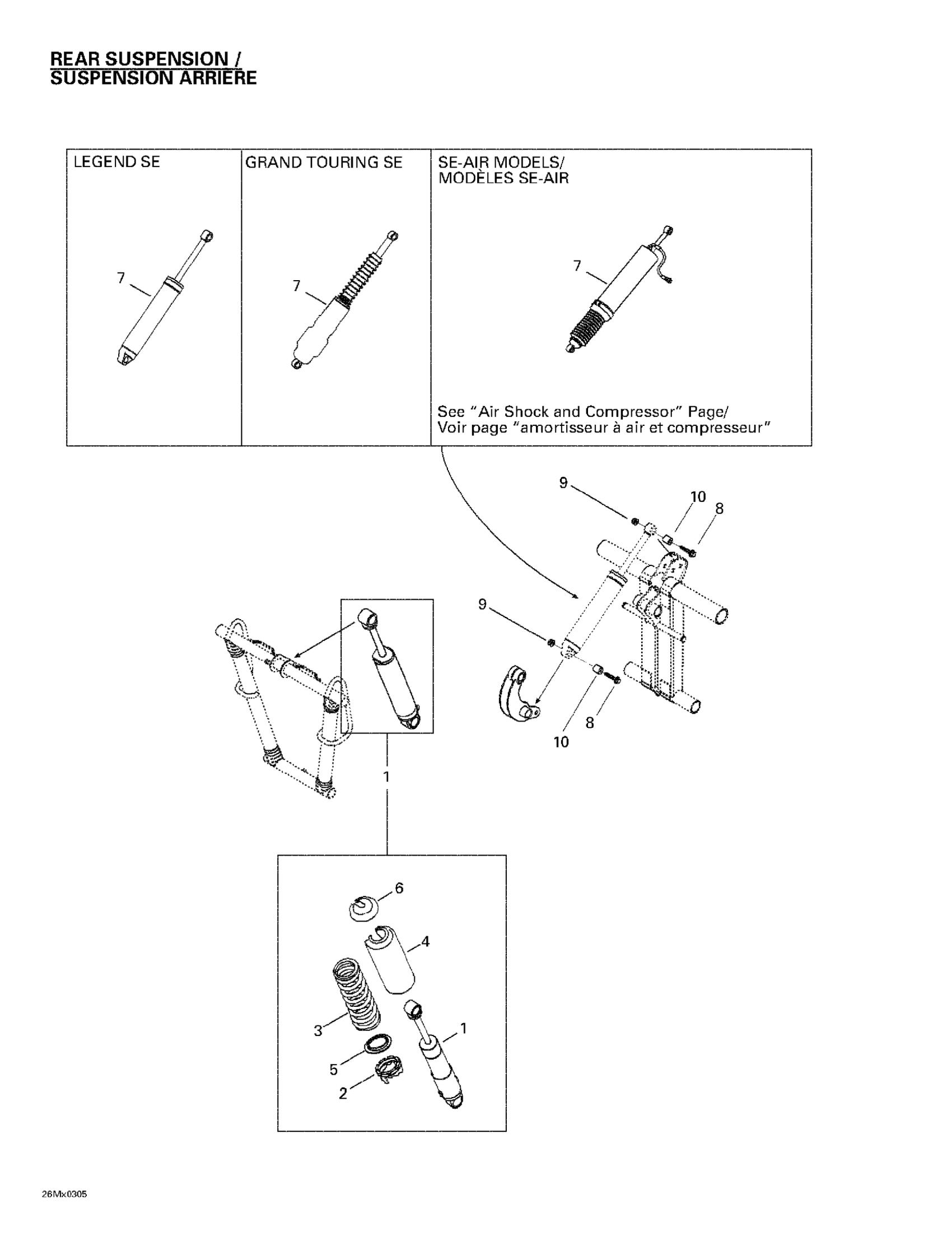 Rear Air Shock, Se-Air | Includes 21 - 25. Grand Touring 600. Grand Touring 700.