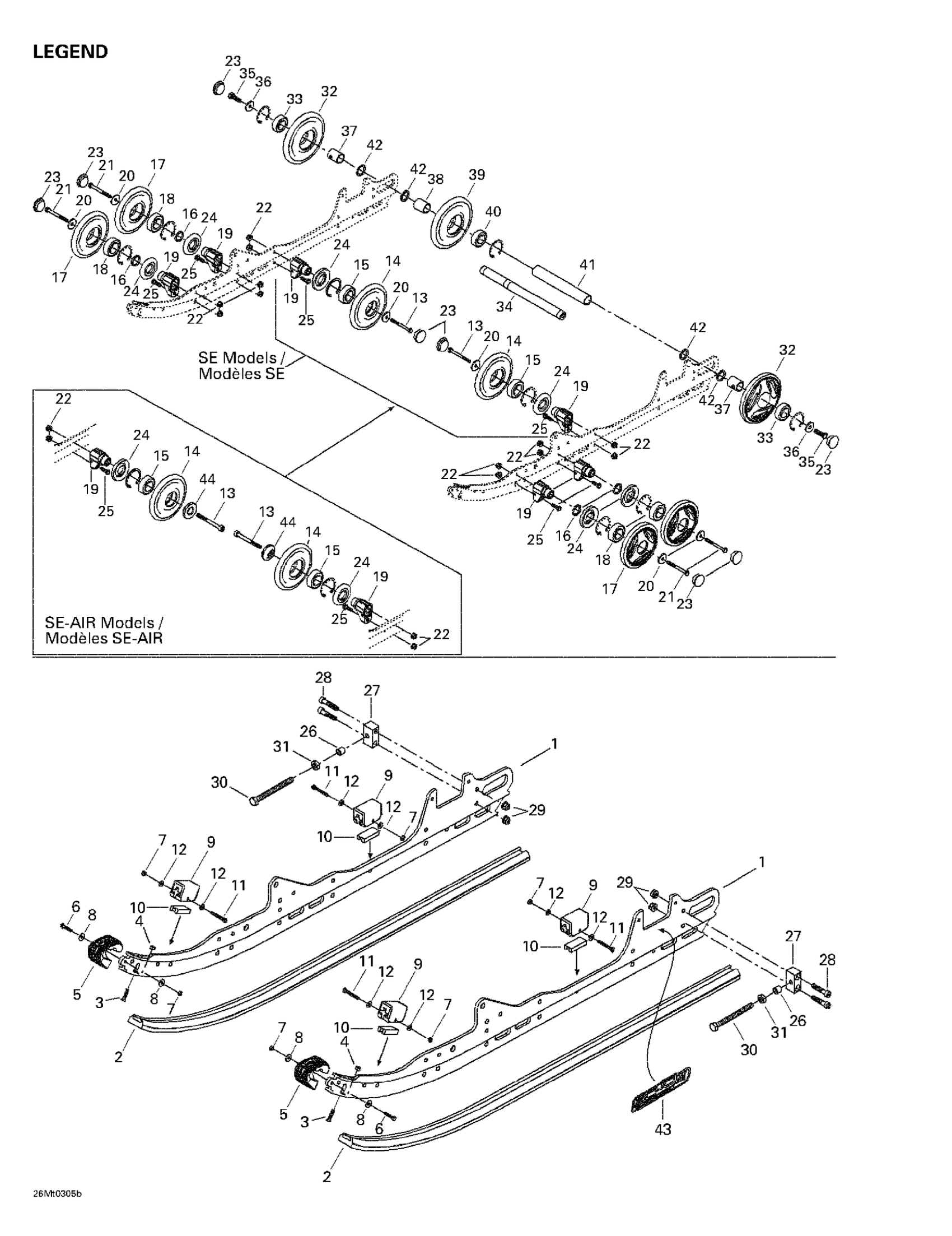 Ski-Doo Grand Touring SE 800 SDI, 2003 Rear Suspension (Legend) Diagram