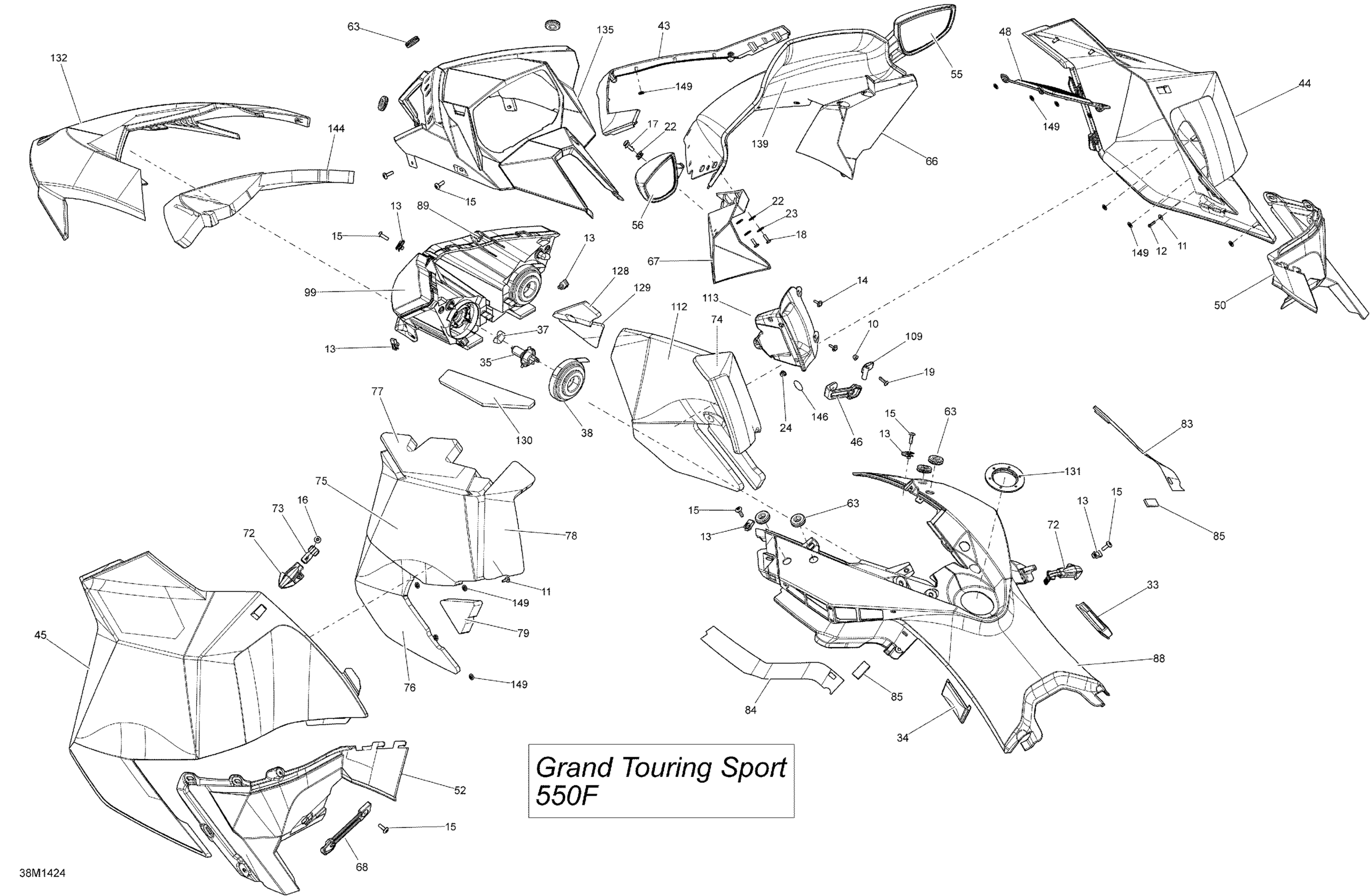 Ski-Doo GRAND TOURING SPORT 550F XP, 2014 09- Hood, Windshield And Console Diagram