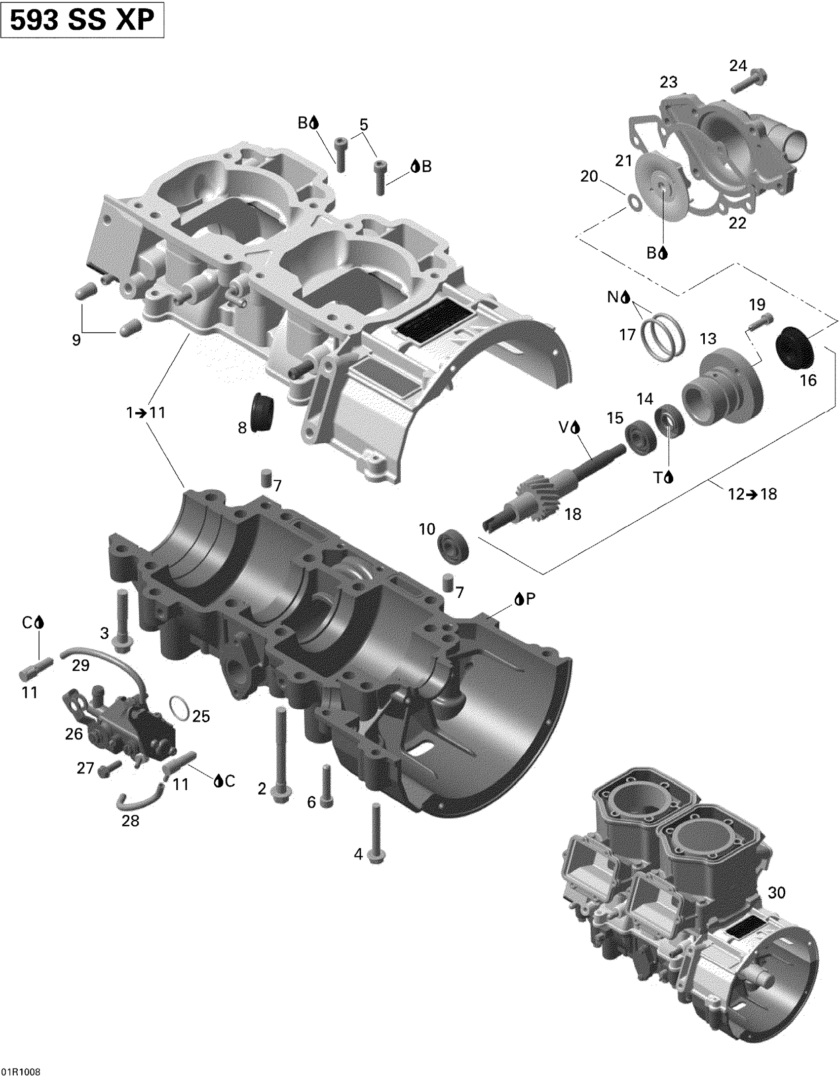 Ski-Doo Grand-Touring Sport 600, 2010 Crankcase, Water Pump And Oil Pump Diagram