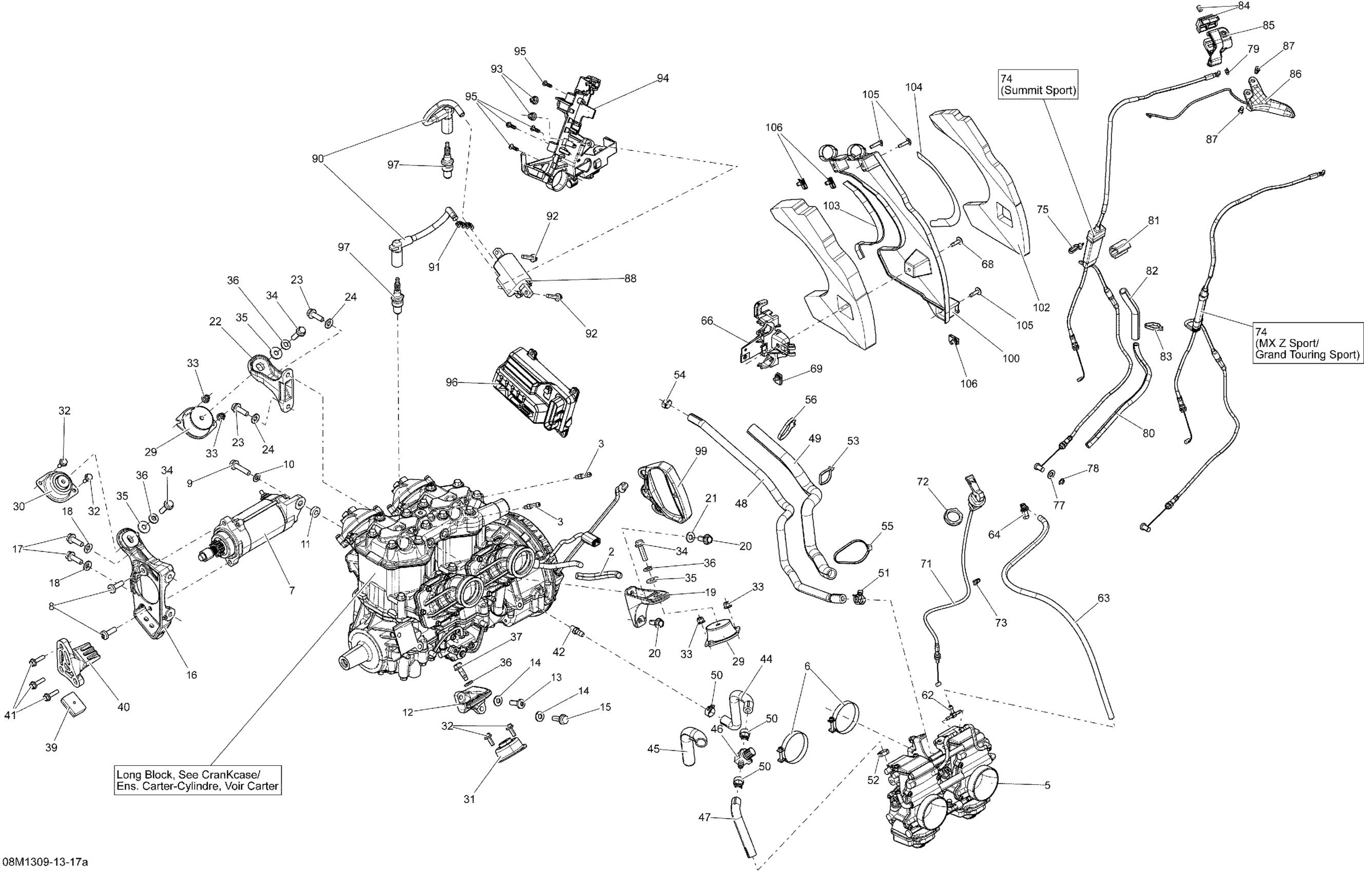 Ski-Doo GRAND TOURING SPORT 600 XP, 2013 01- Engine And Engine Support Diagram