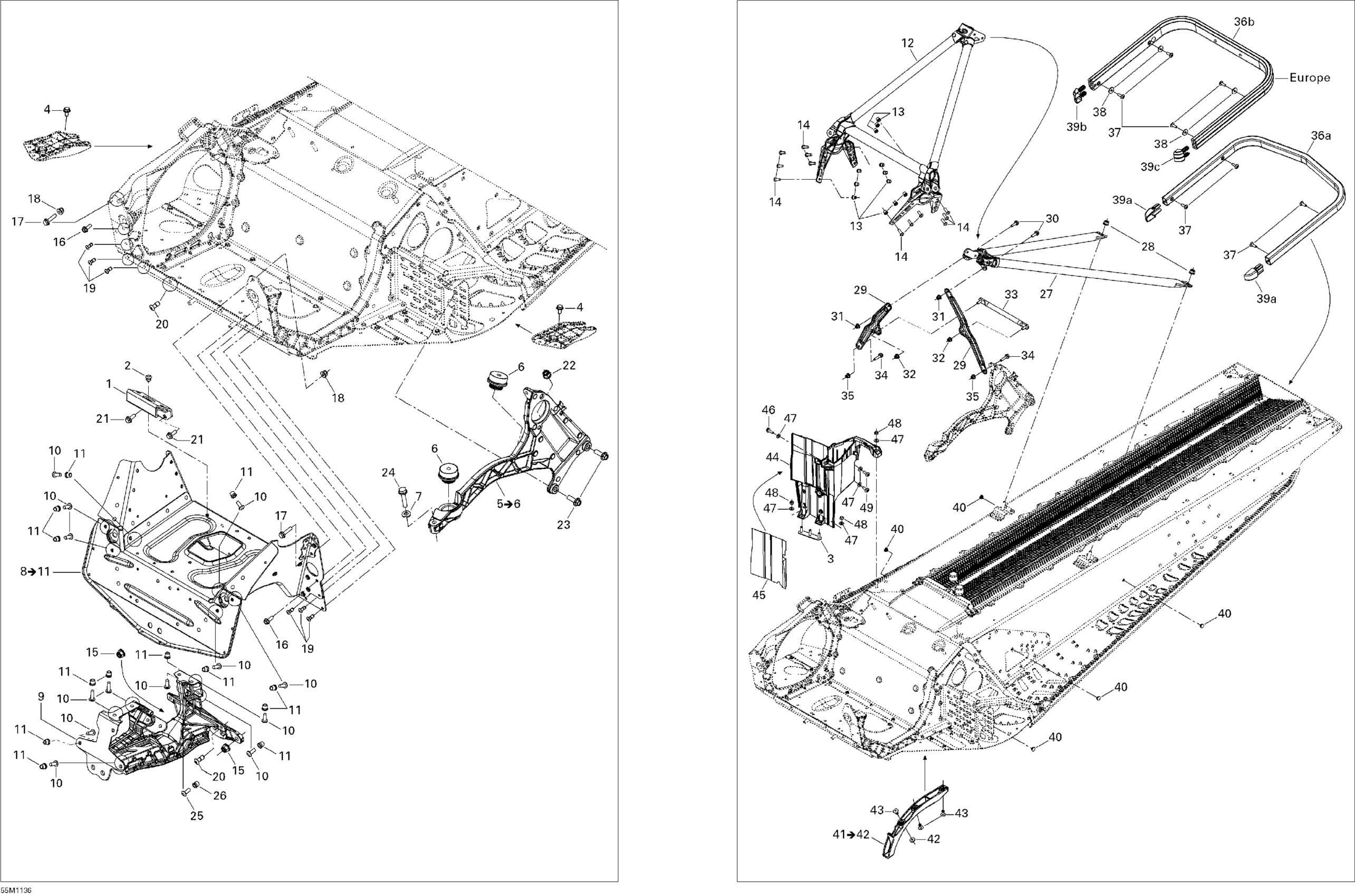 Ski-Doo Grand Touring Sport 600ACE, 2011 09- Frame and Components Diagram