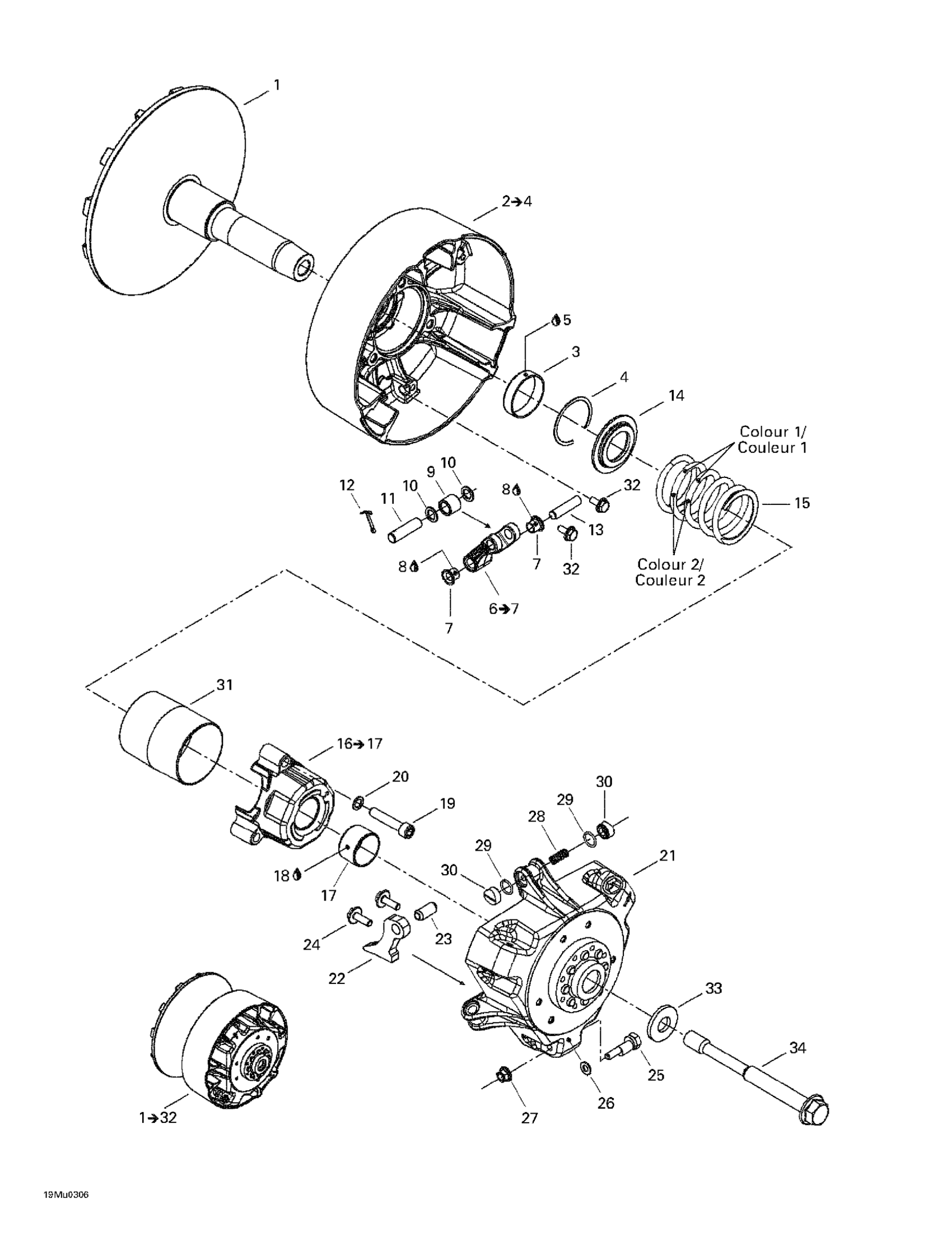 Ski-Doo Grand Touring V-1000, 2003 Drive Pulley Diagram