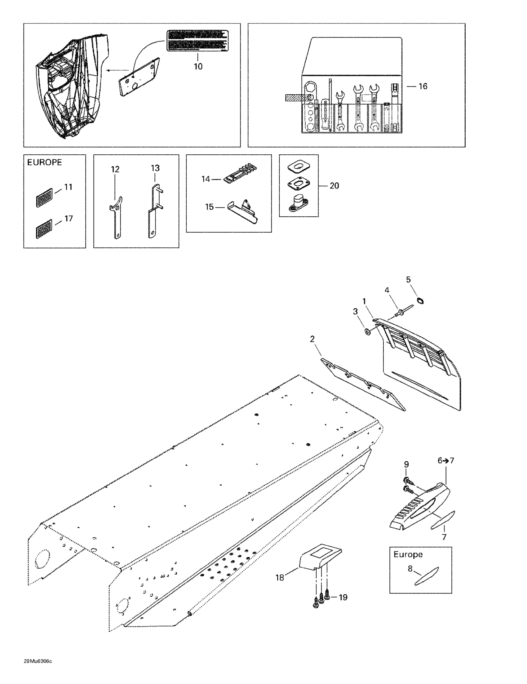 Ski-Doo Grand Touring V-1000, 2003 Snow Guard And Moulding Diagram