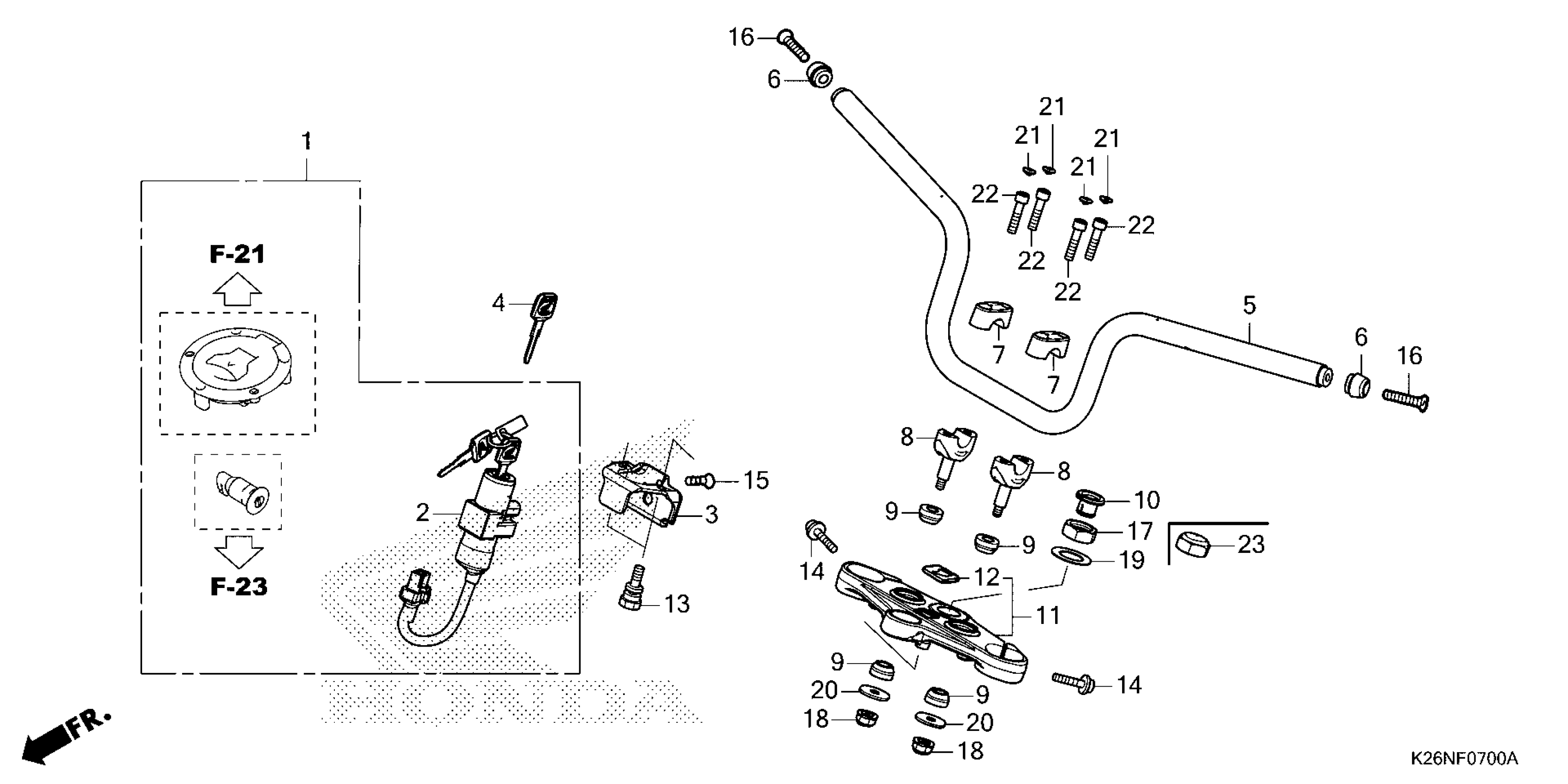 Honda GROM125A2AC (23) MOTORCYCLE, THA, VIN# MLHJC925-P5100001 TO MLHJC925-P5199999 HANDLEBAR Diagram