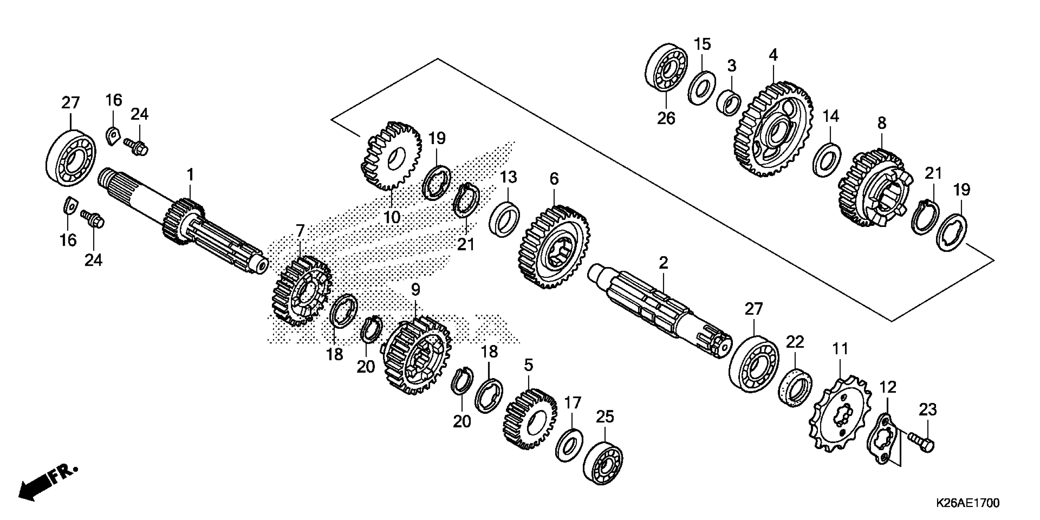 Honda GROM125AAC (19) MOTORCYCLE, THA, VIN# MLHJC755-K5100001 TO MLHJC755-K5199999 TRANSMISSION Diagram