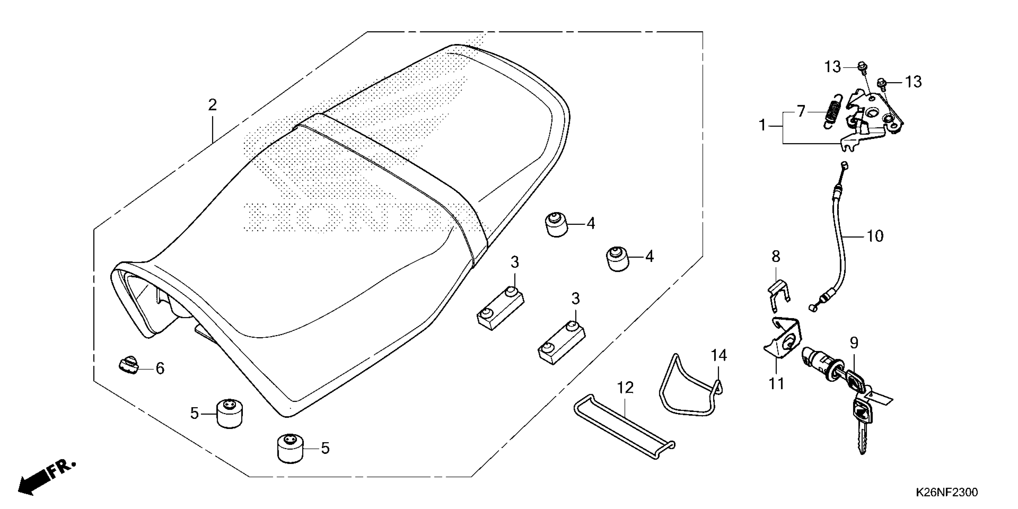 Honda GROM125AAC (22) MOTORCYCLE, THA, VIN# MLHJC925-N5000001 TO MLHJC925-N5099999 SEAT Diagram