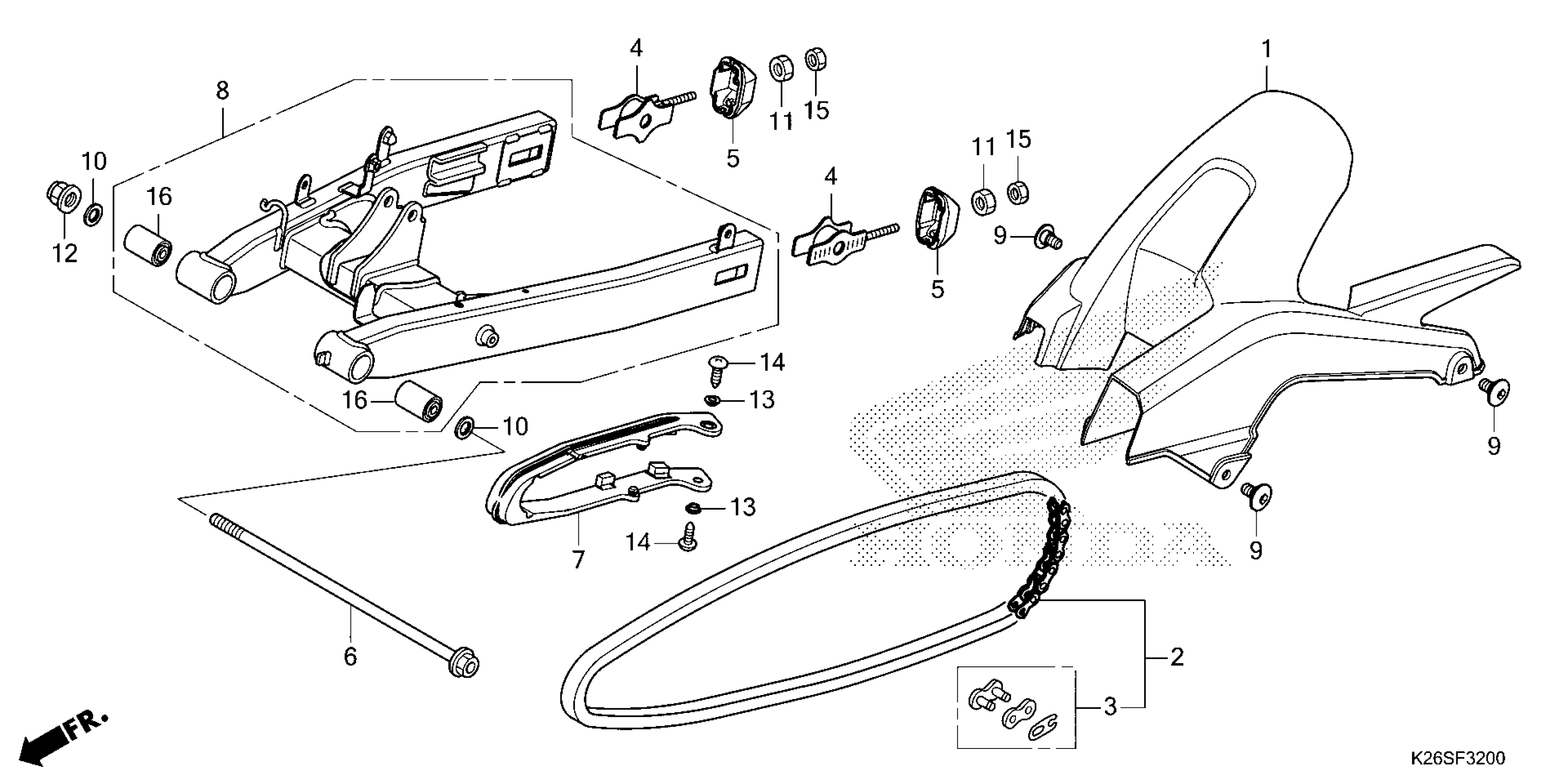 Honda GROM125AAC (25) MOTORCYCLE, THA, VIN# MLHJC925-S5300001 TO MLHJC925-S5399999 SWINGARM Diagram