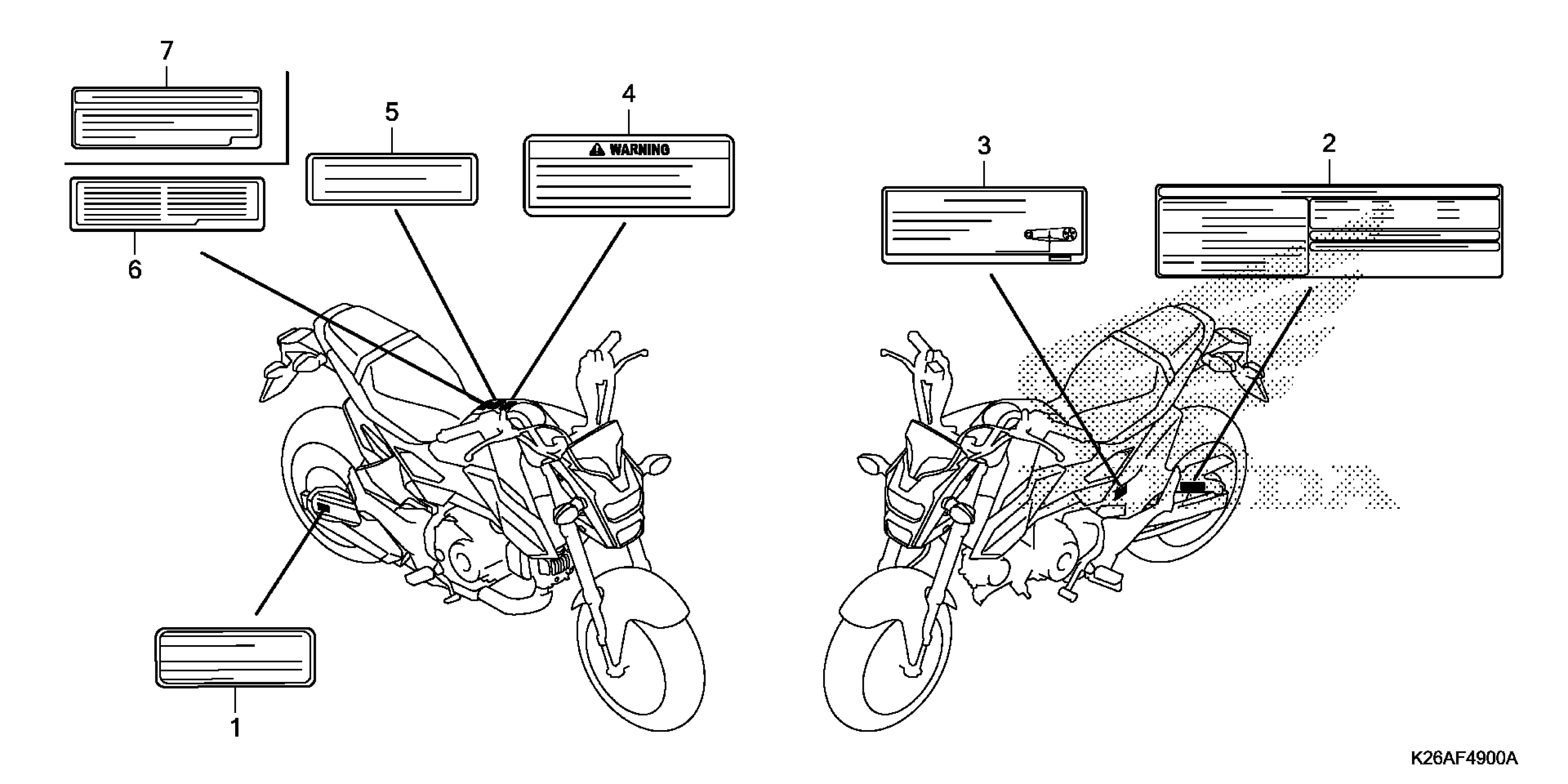 Honda GROM125AC (19) MOTORCYCLE, THA, VIN# MLHJC751-K5100001 TO MLHJC751-K5199999 CAUTION LABELS Diagram