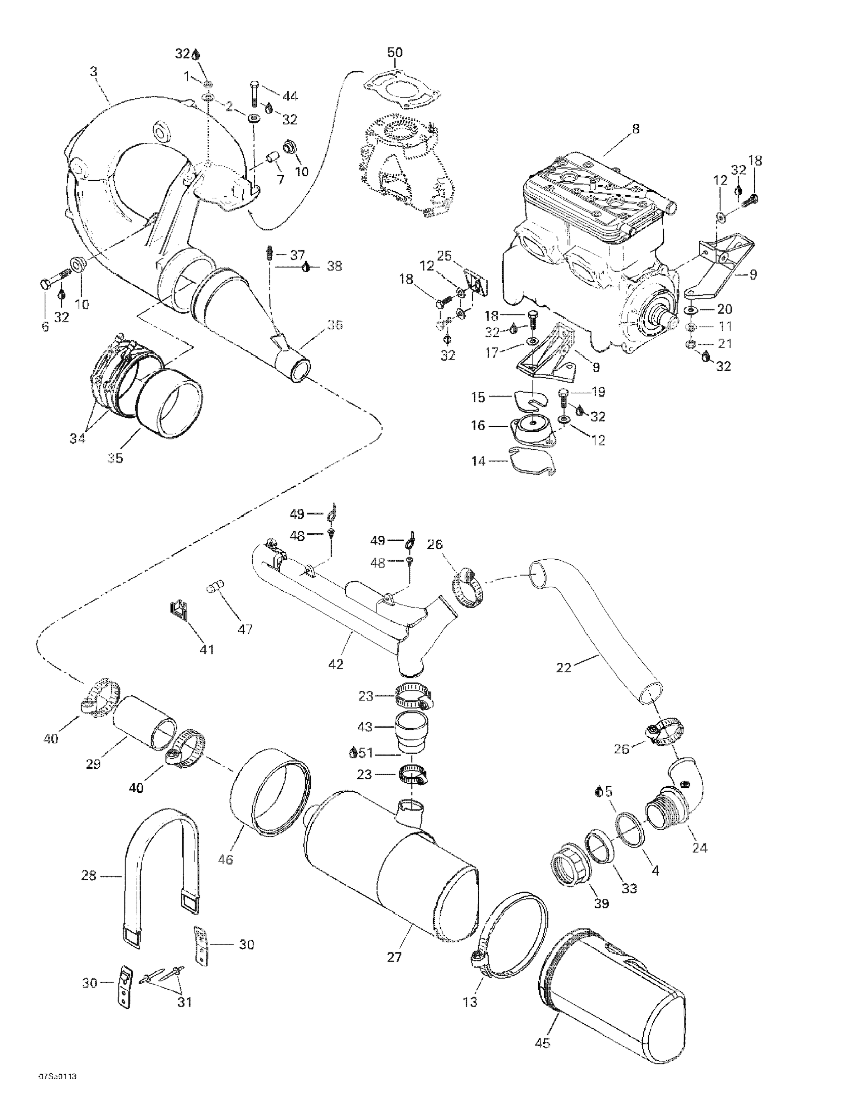 Sea-doo GS, 5548, 2001 Engine Support And Muffler Diagram