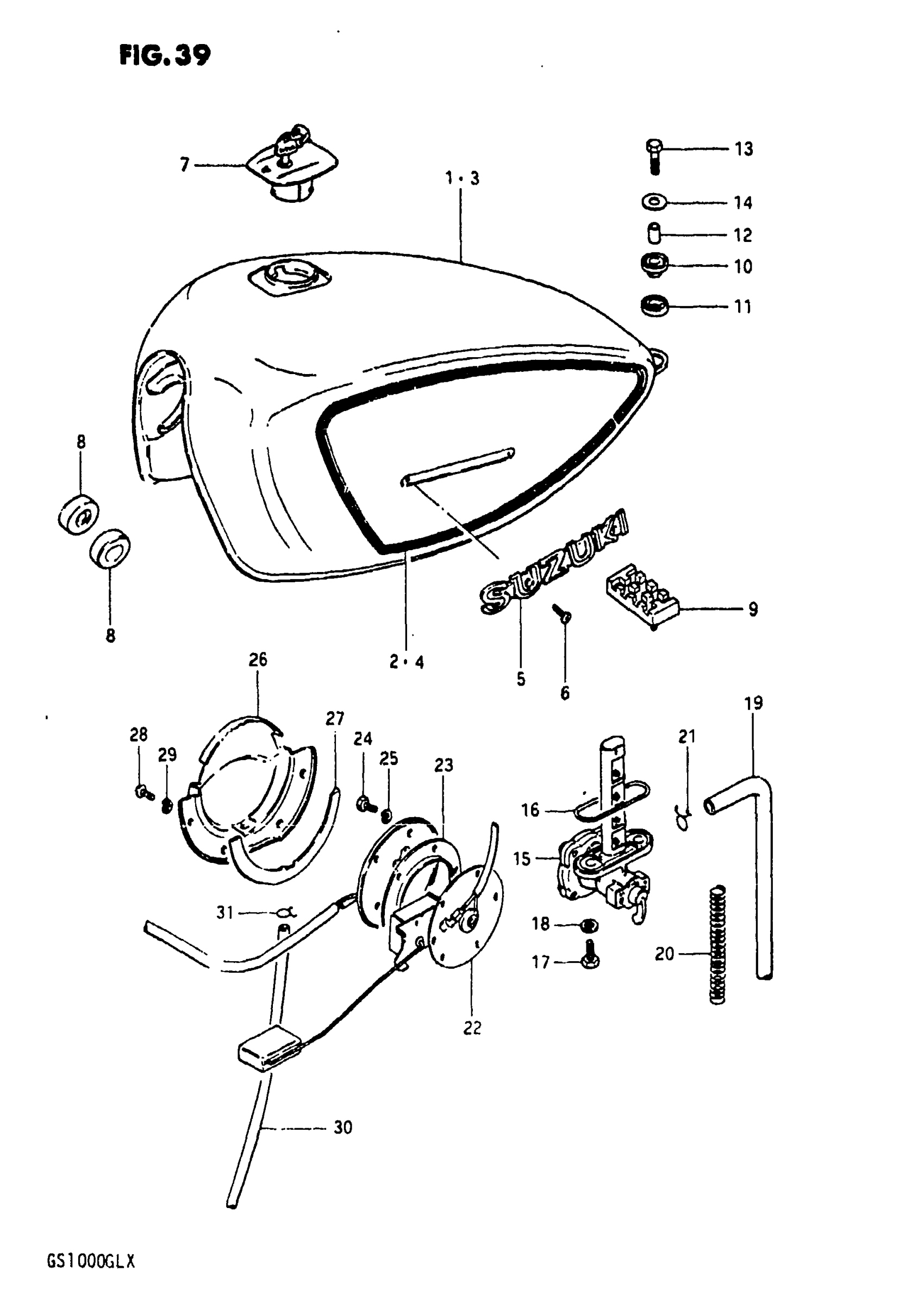 Suzuki GS1000GL (1981) FUEL TANK (MODEL X) Diagram