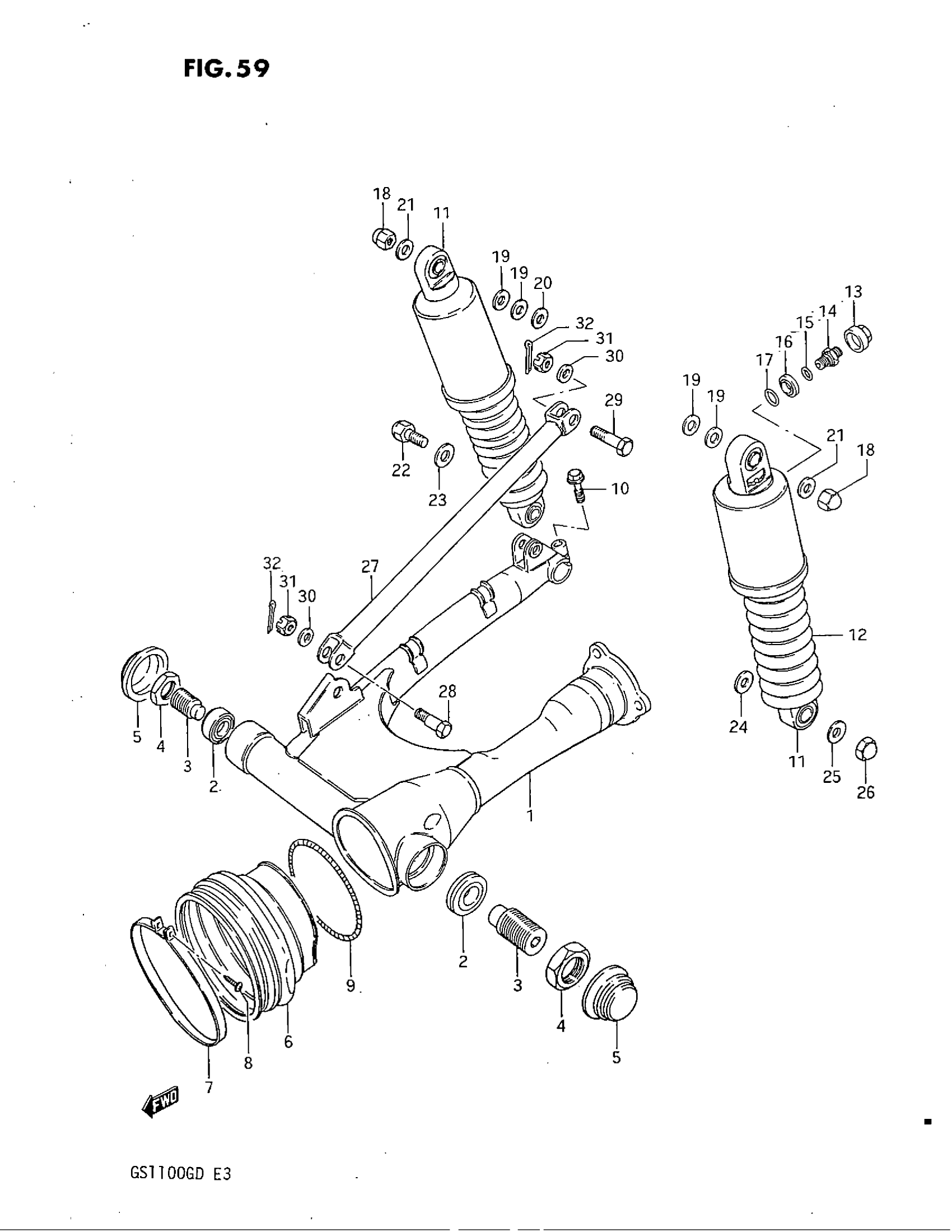 Suzuki GS1100G (1983) REAR SWINGING ARM (MODEL D) Diagram