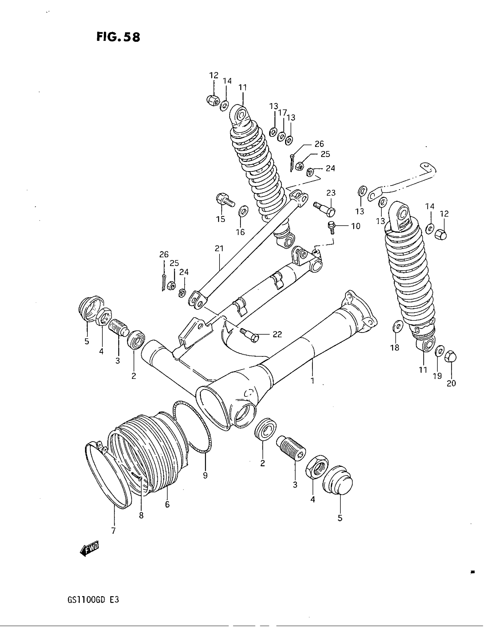 Suzuki GS1100G (1983) REAR SWINGING ARM (MODEL Z) Diagram