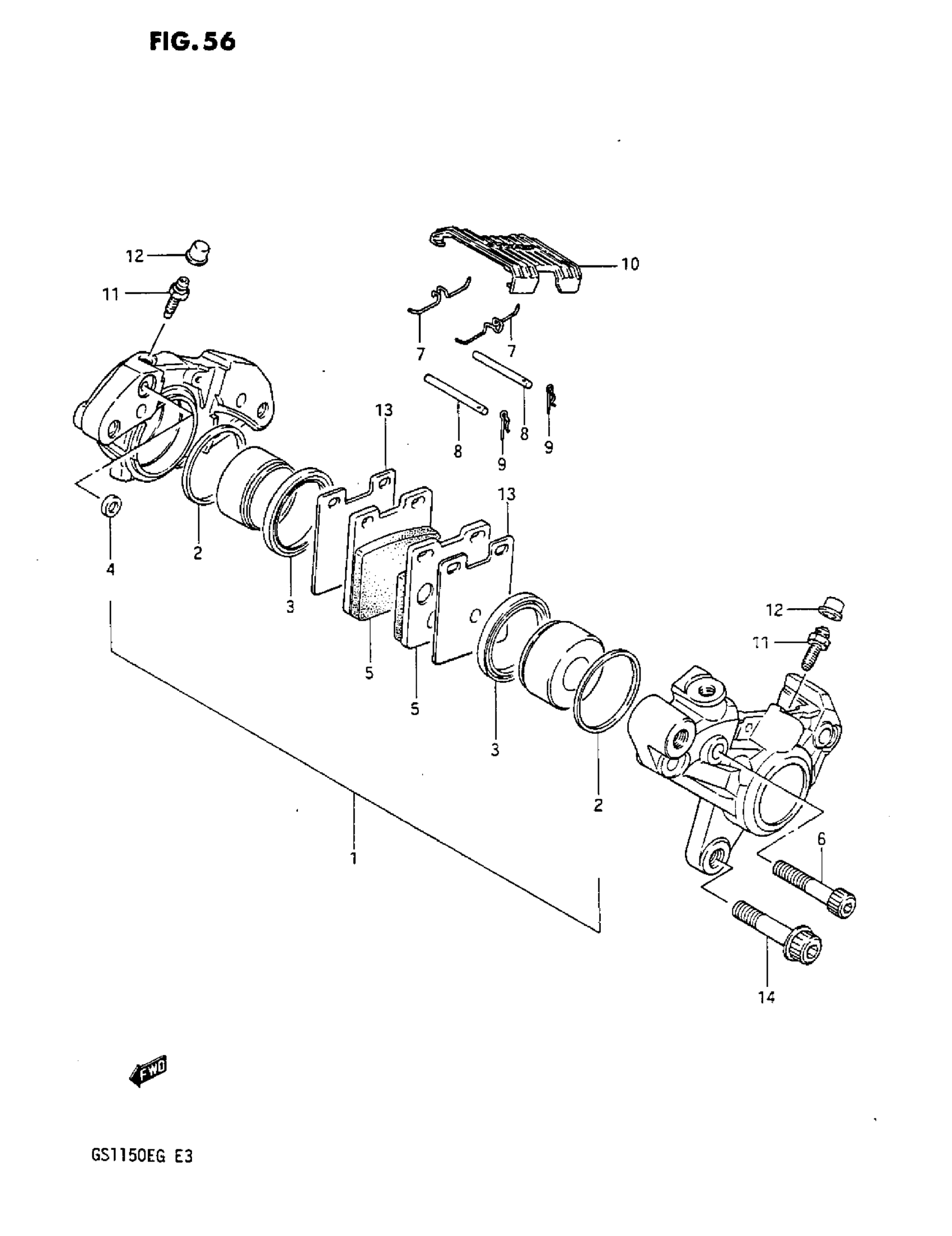 Suzuki GS1150 (1984) FRONT CALIPERS Diagram