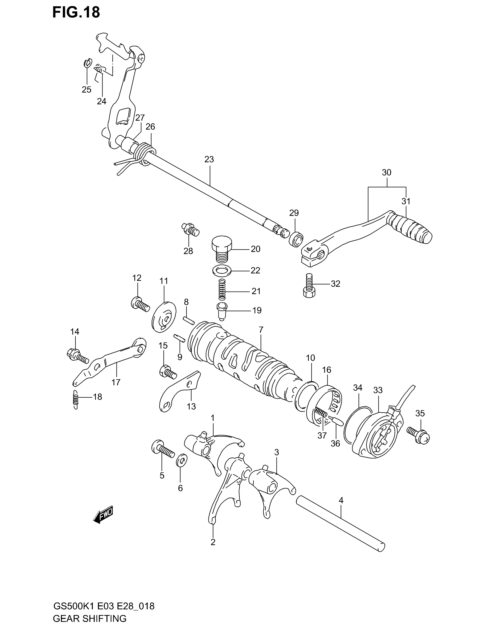 Suzuki GS500 (2002) GEAR SHIFTING Diagram