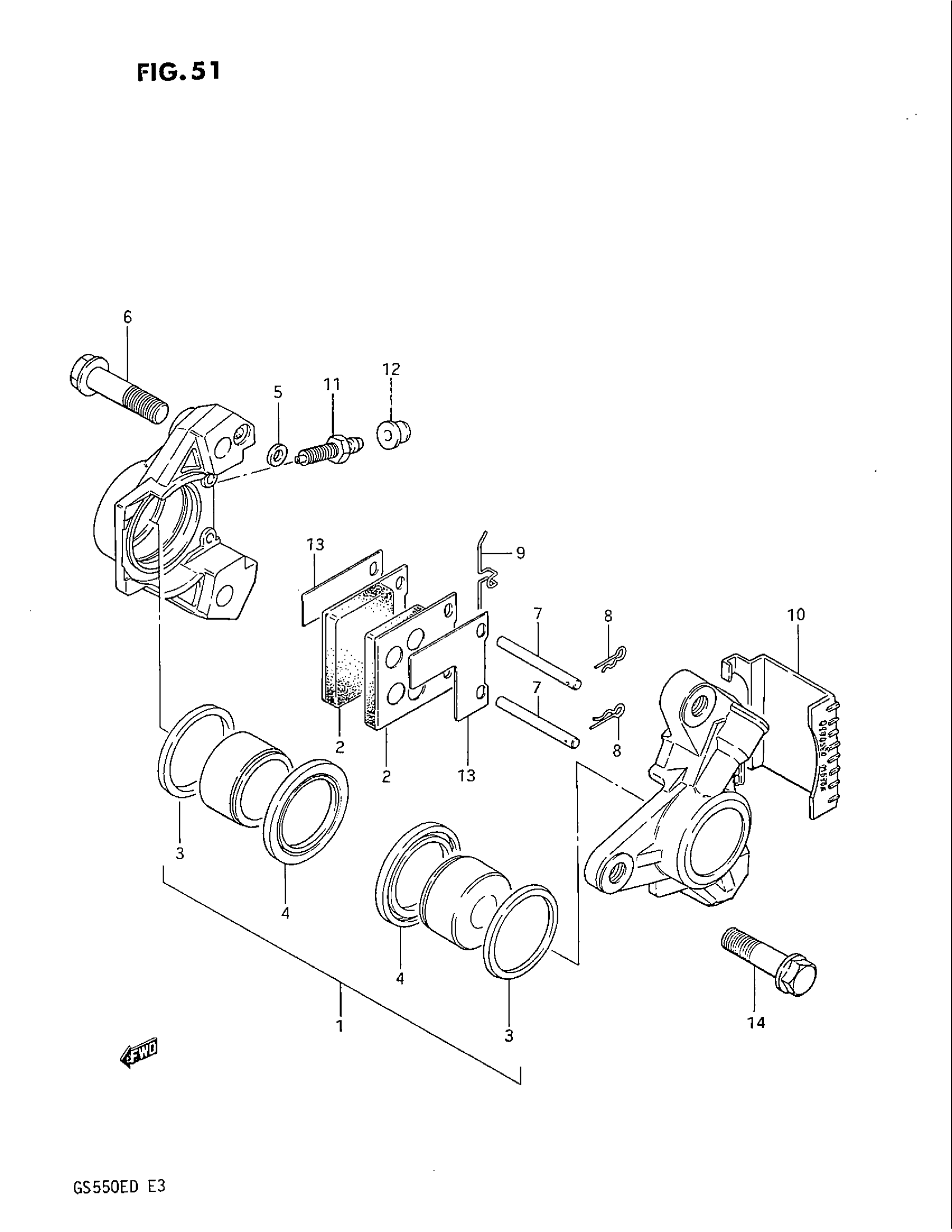Suzuki GS550E (1983) FRONT CALIPERS Diagram