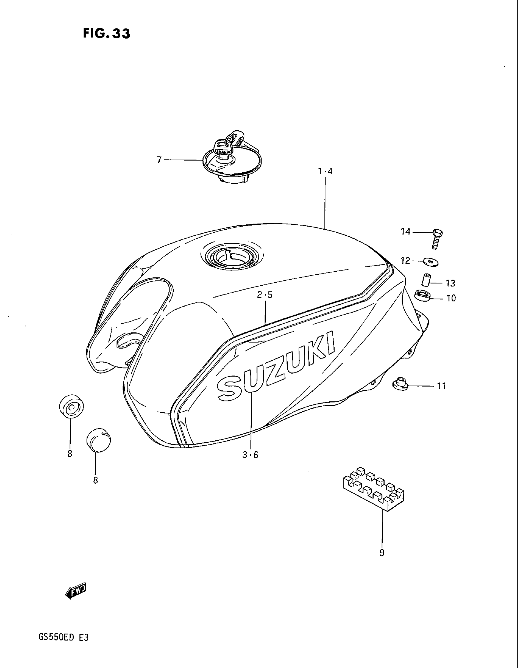 Suzuki GS550E (1983) FUEL TANK (GS550ED) Diagram