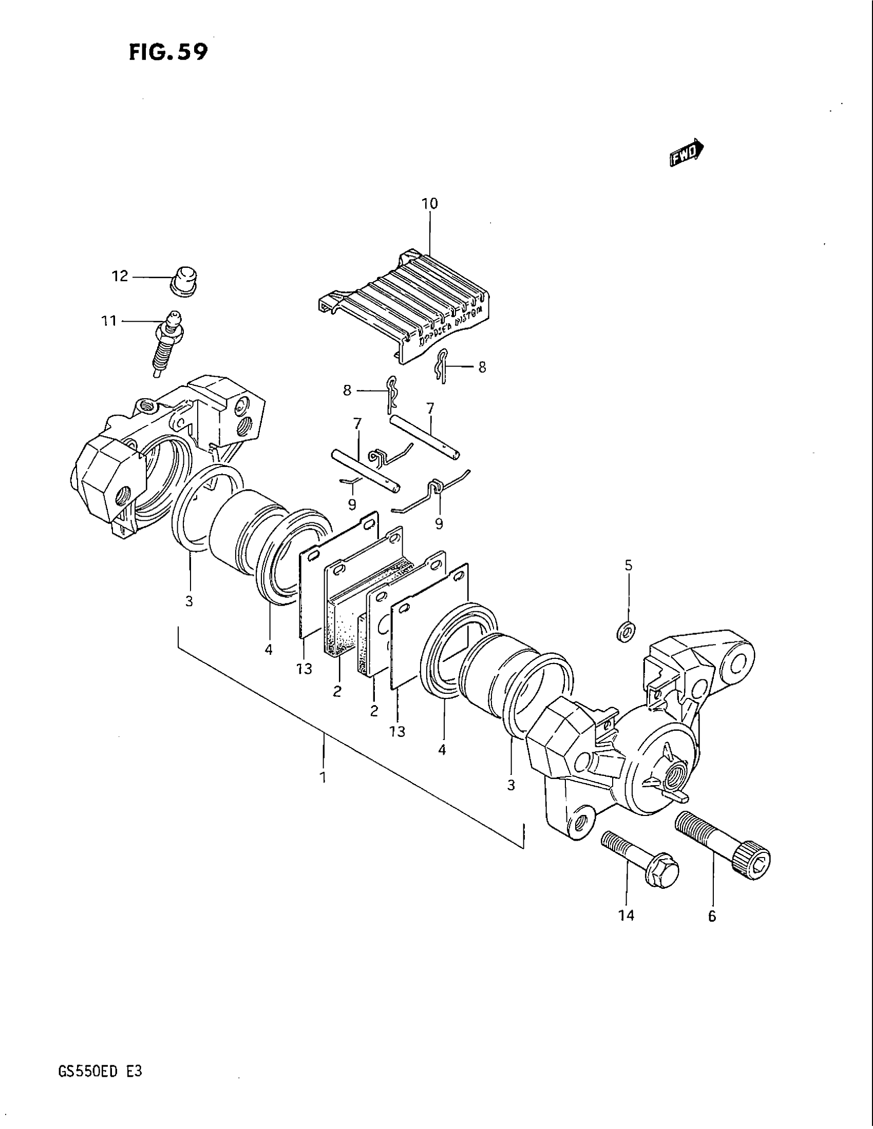 Suzuki GS550E (1983) REAR CALIPERS Diagram