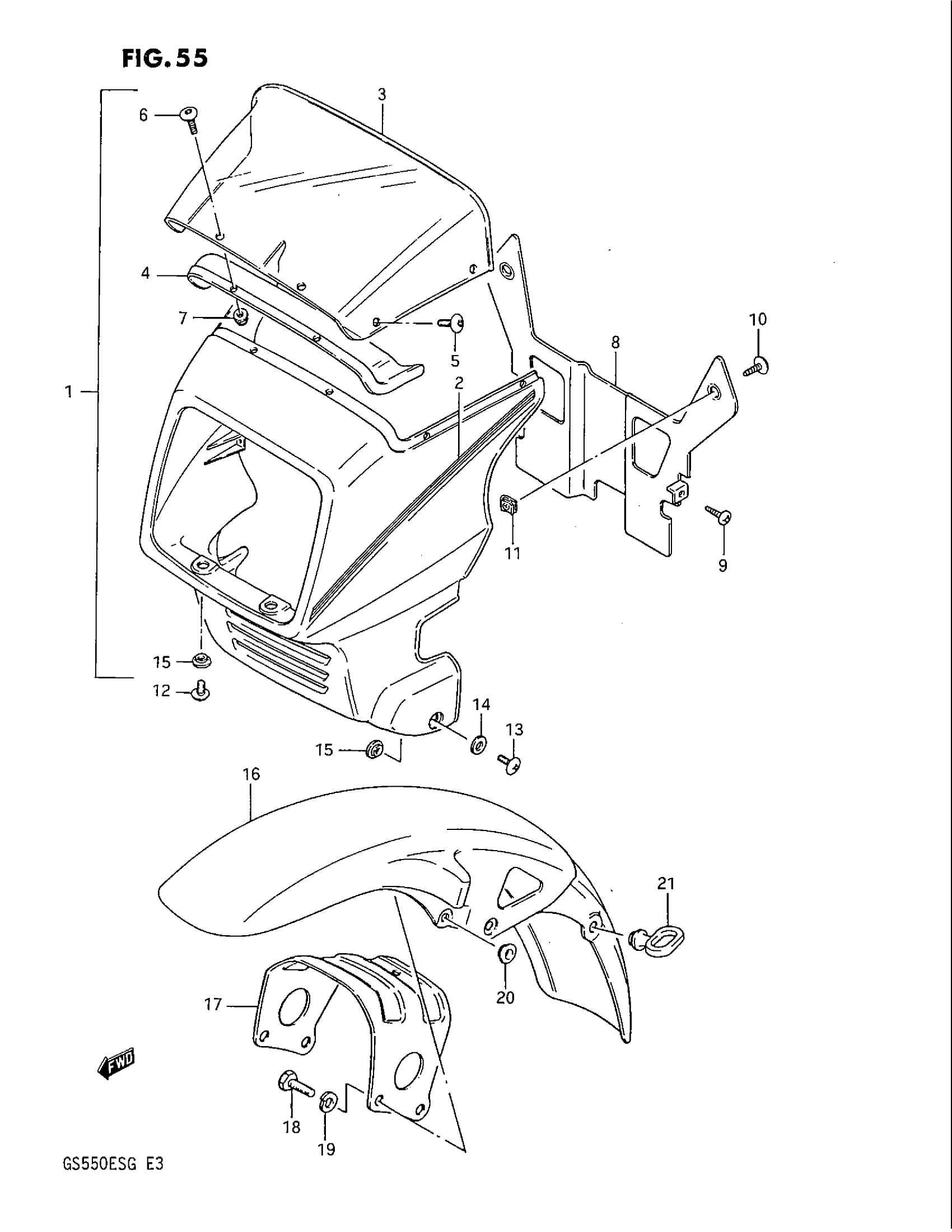 Suzuki GS550EF (1986) HEADLAMP COVER - FRONT FENDER (GS550EF/EG) Diagram