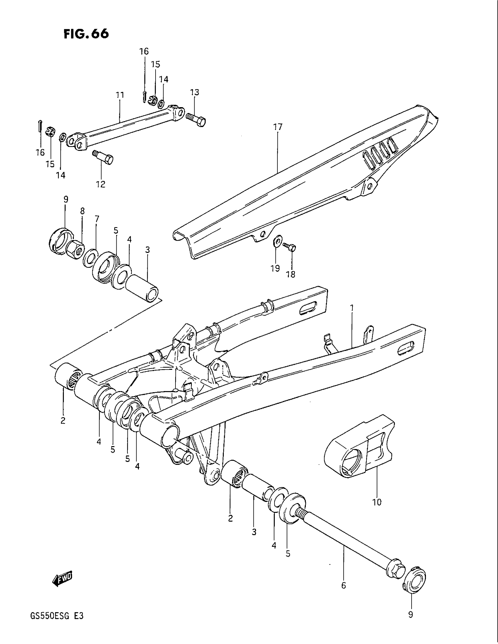 Suzuki GS550EF (1986) REAR SWINGING ARM Diagram