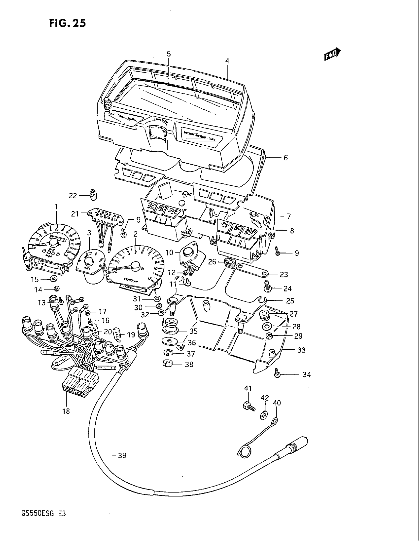 Suzuki GS550EF (1986) SPEEDOMETER - TACHOMETER (GS550ES3/ESE/ESF/ESG) Diagram