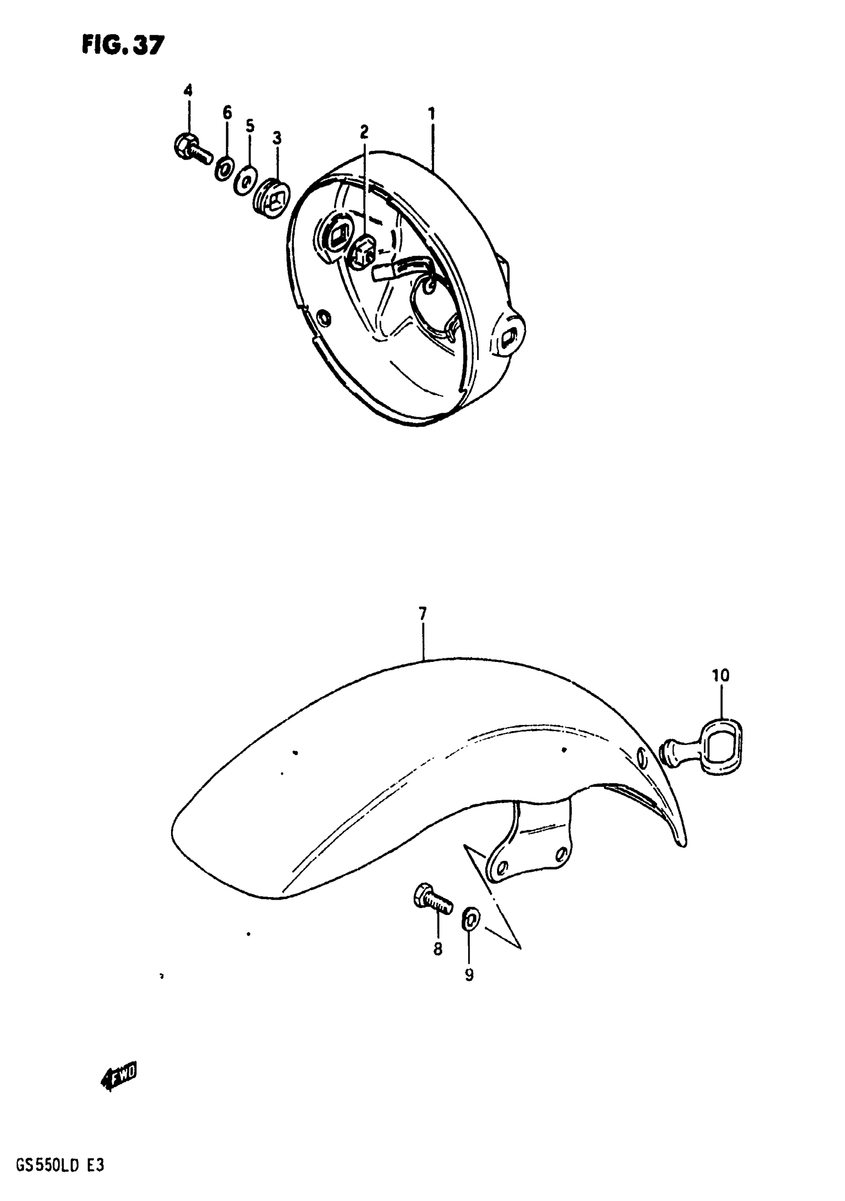 Suzuki GS550L (1983) HEADLAMP HOUSING - FRONT FENDER Diagram