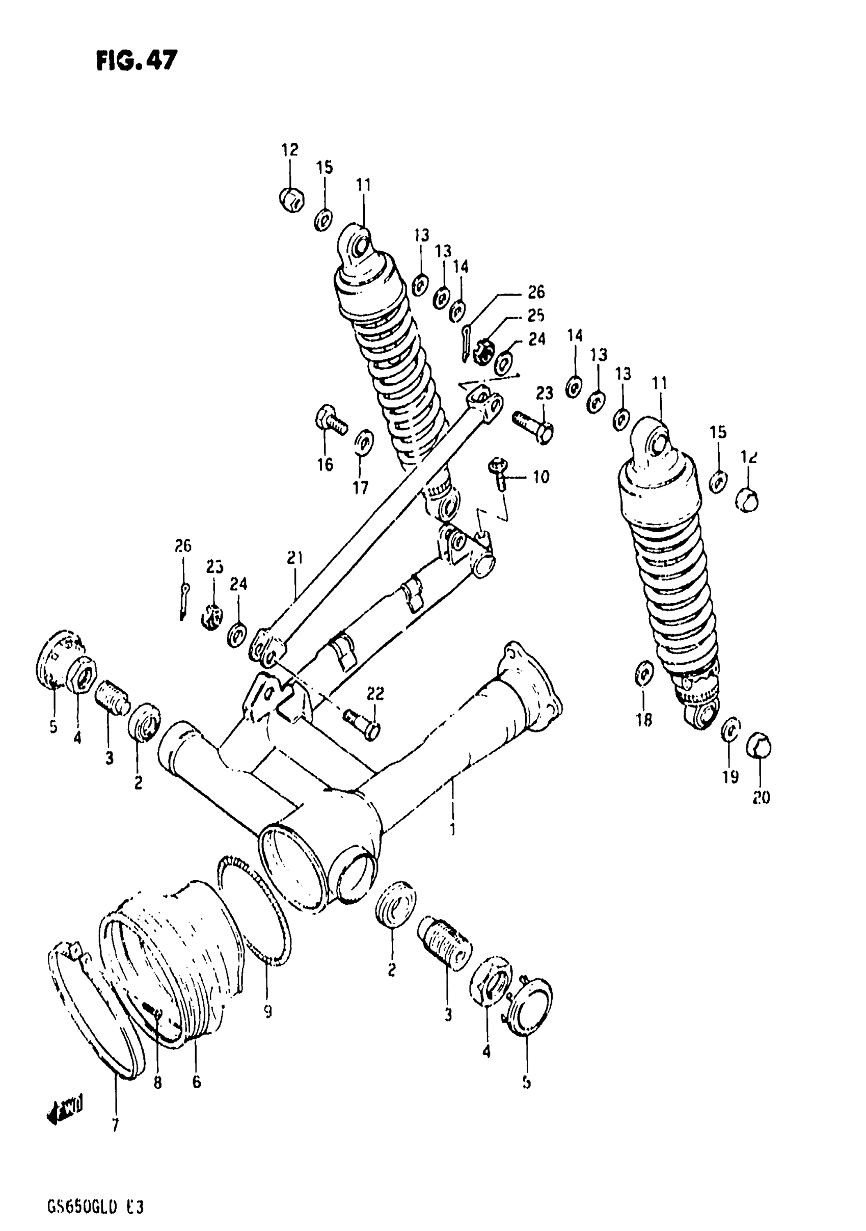 Suzuki GS650GL (1983) REAR SWINGING ARM Diagram