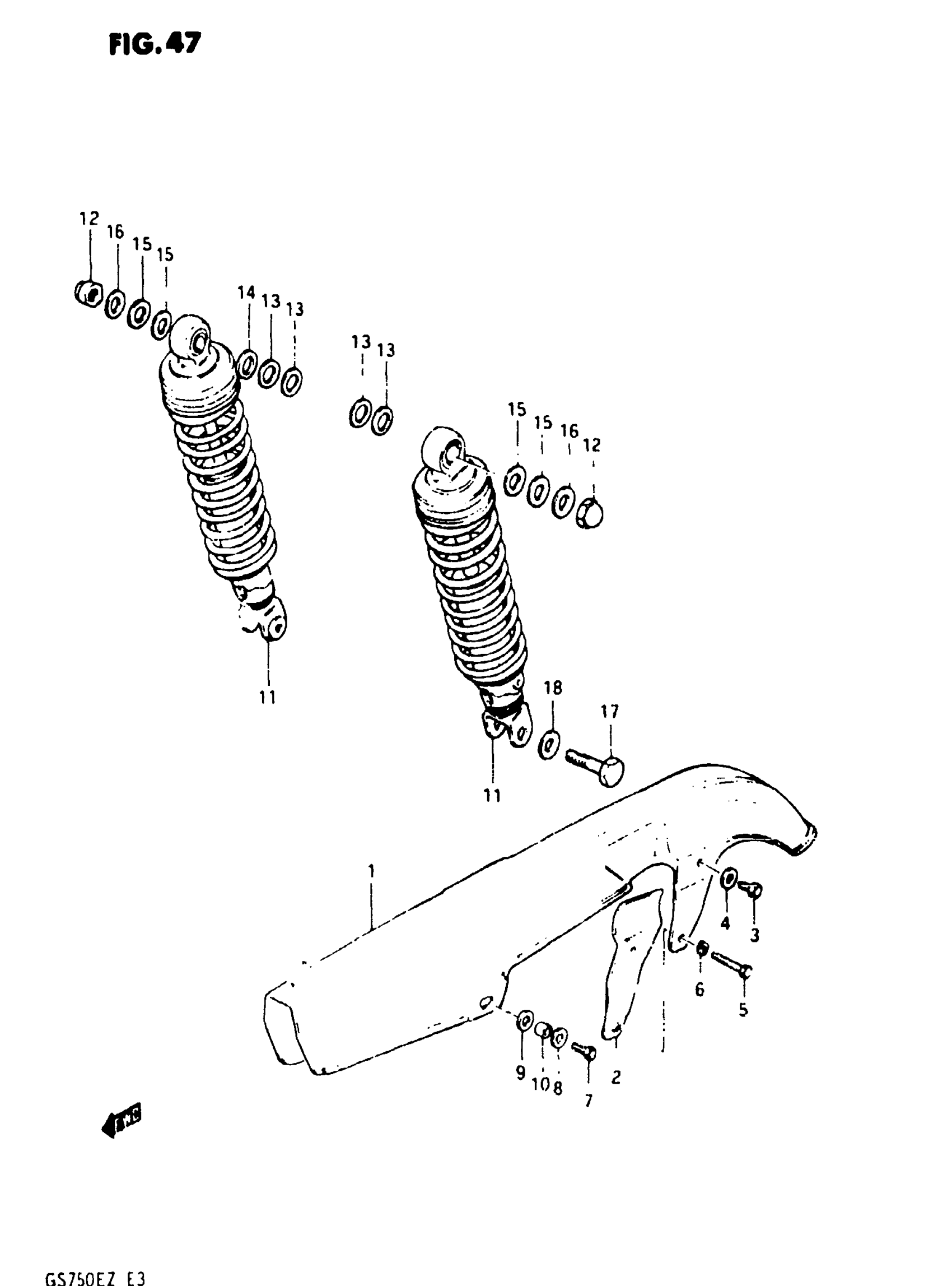 Suzuki GS750E (1982) CHAIN CASE - REAR SHOCK ABSORBER Diagram
