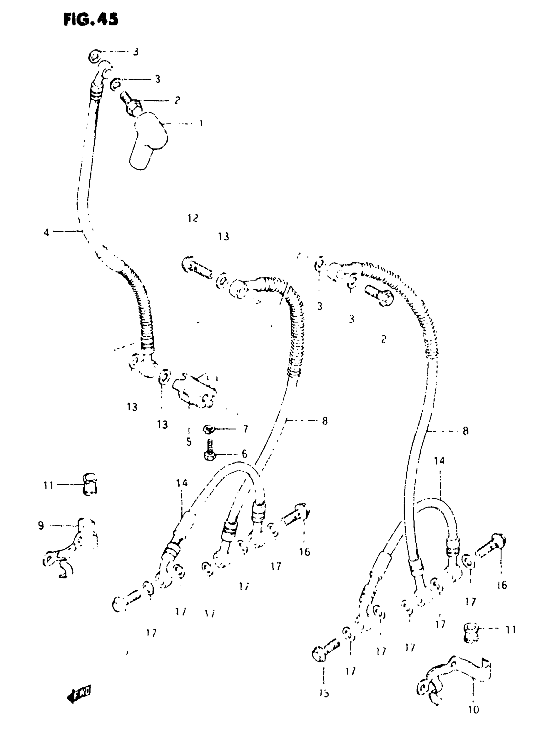 Suzuki GS750E (1982) FRONT BRAKE HOSE Diagram