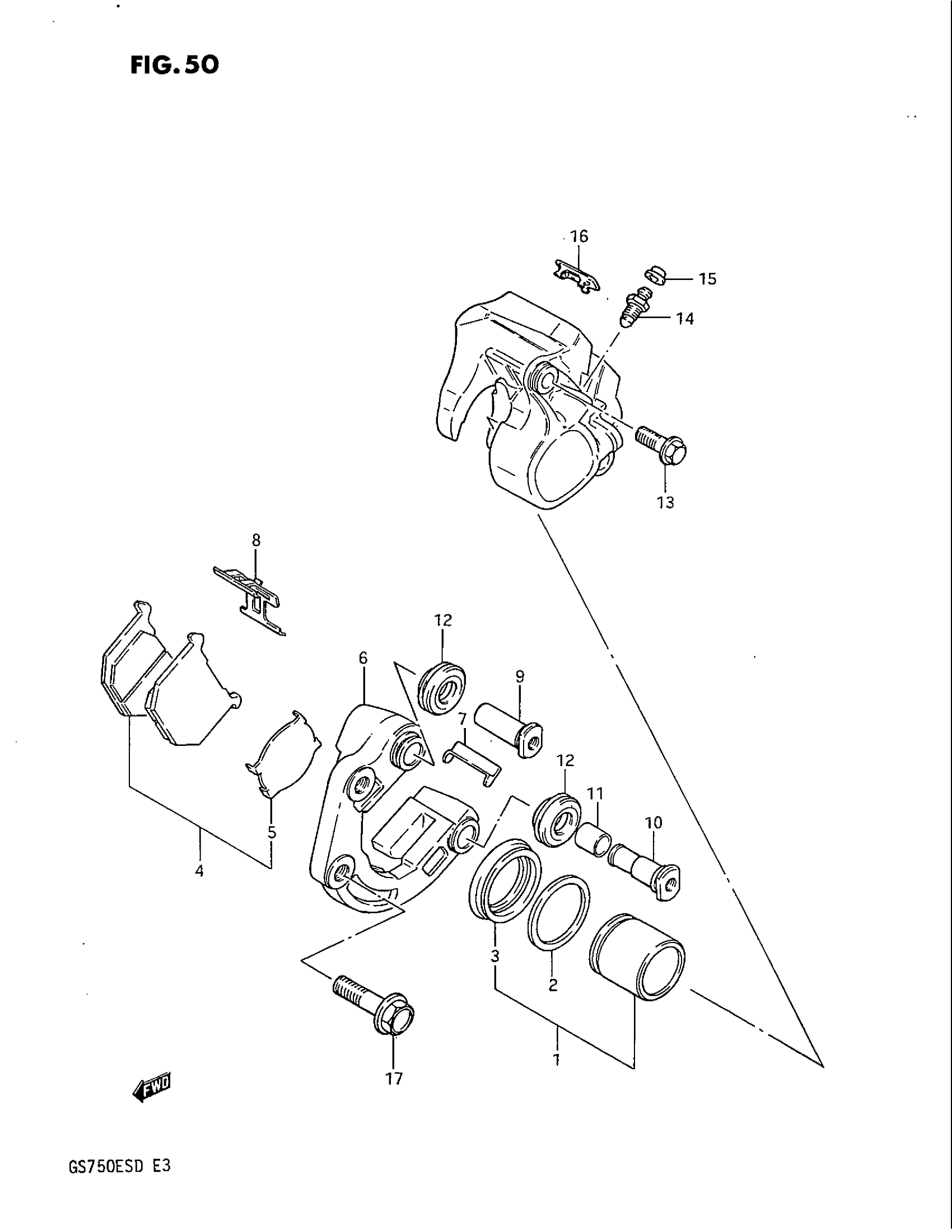 Suzuki GS750E (1983) FRONT CALIPERS Diagram