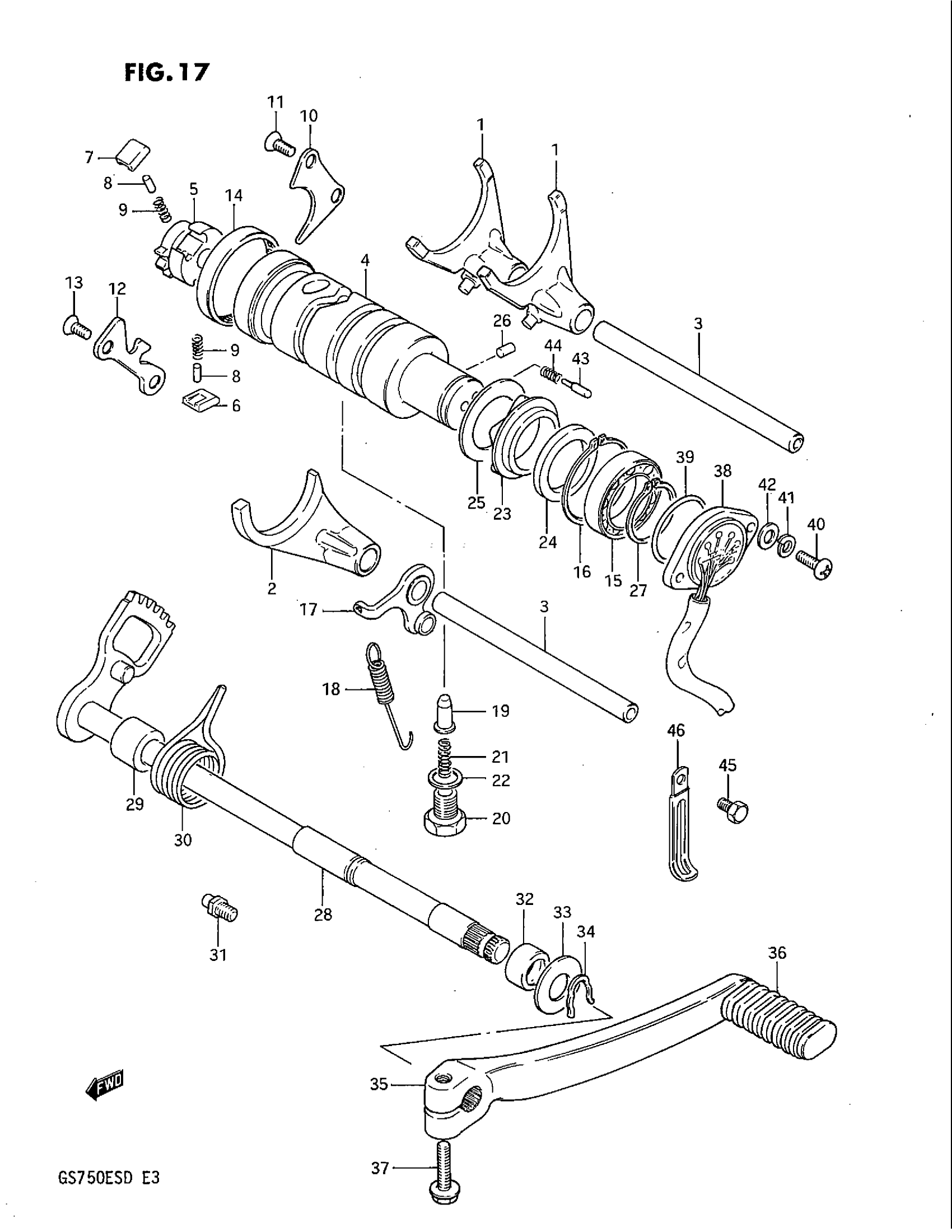 Suzuki GS750E (1983) GEAR SHIFTING Diagram