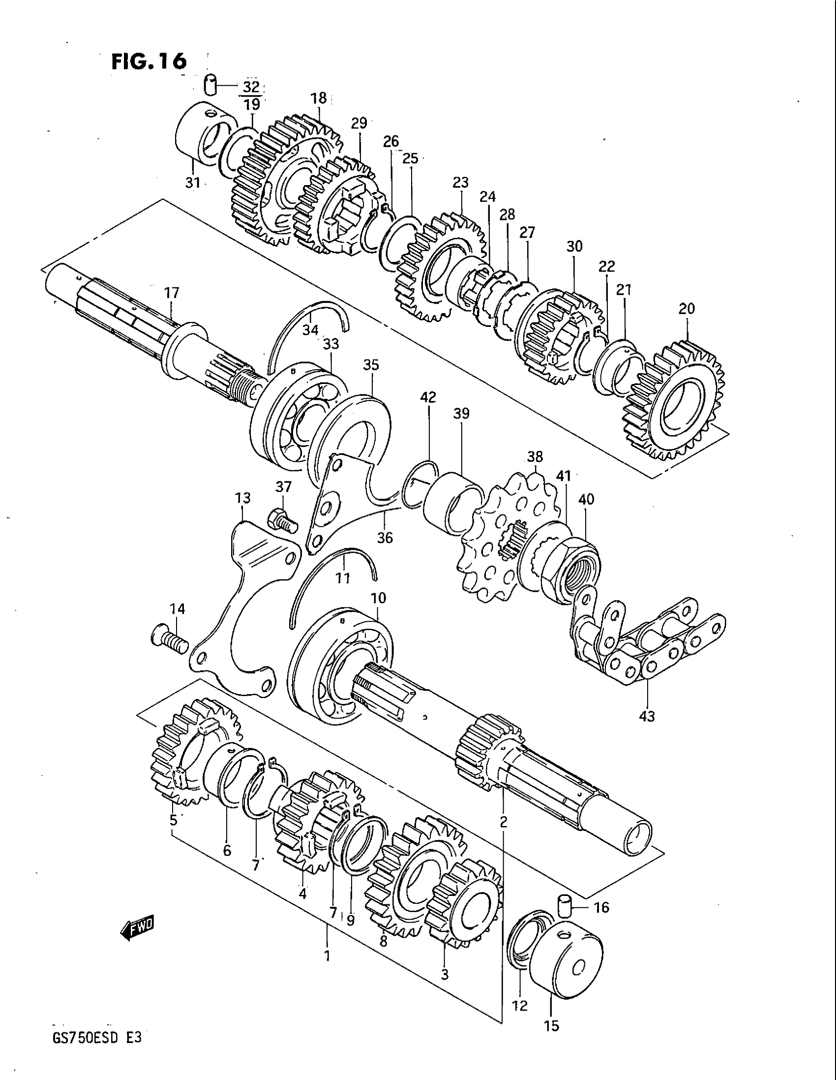 Suzuki GS750E (1983) TRANSMISSION Diagram