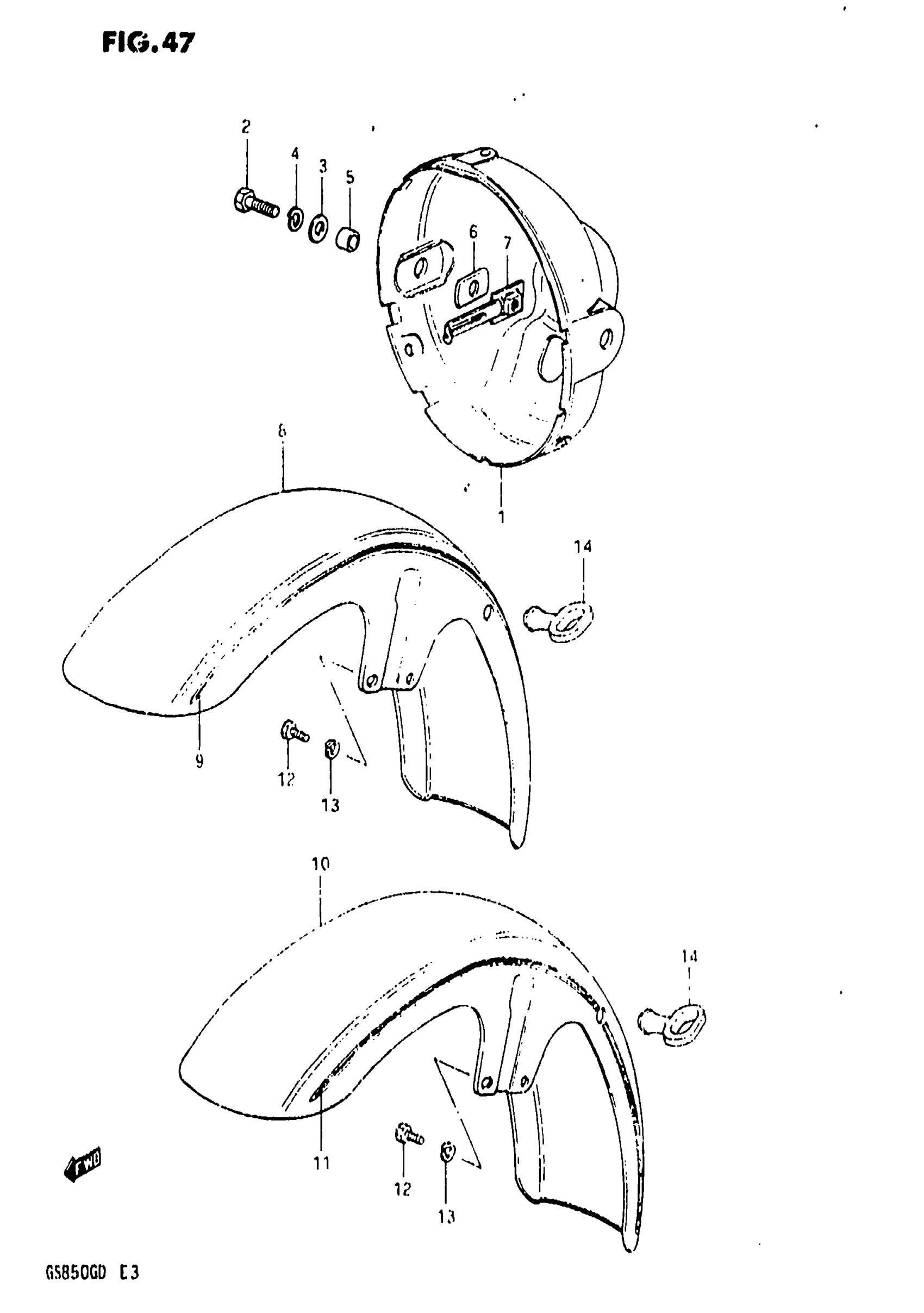 Suzuki GS850G (1983) HEADLAMP HOUSING-FRONT FENDER Diagram