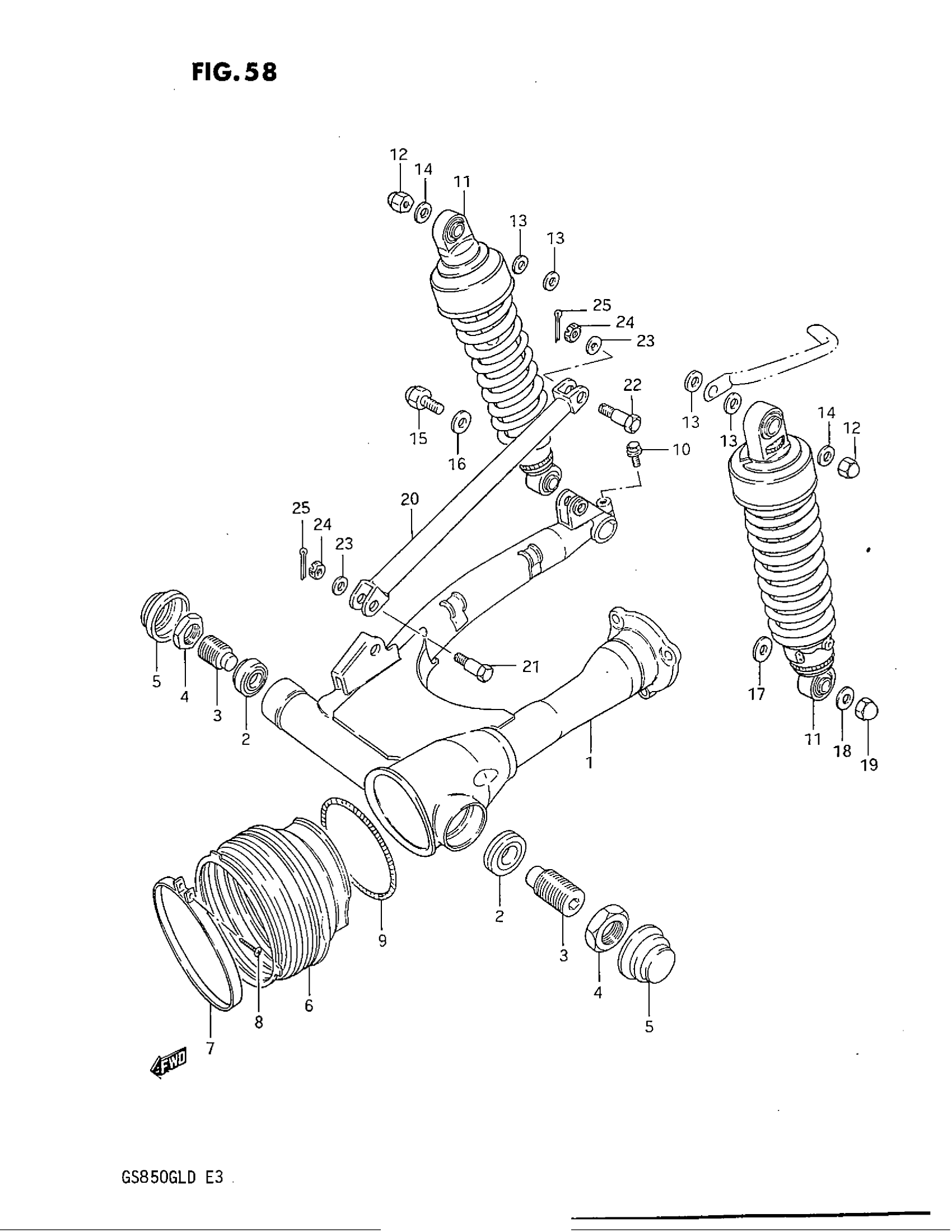 Suzuki GS850GL (1983) REAR SWINGING ARM (MODEL D) Diagram