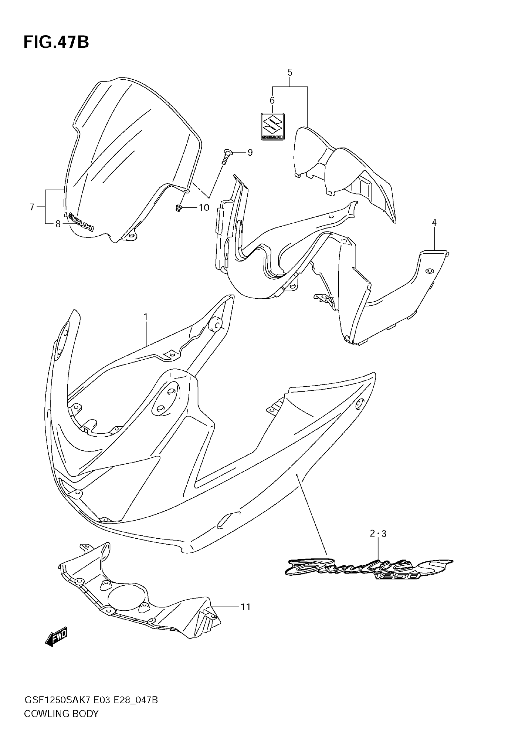 Suzuki GSF1250S (2009) COWLING (MODEL K9) Diagram