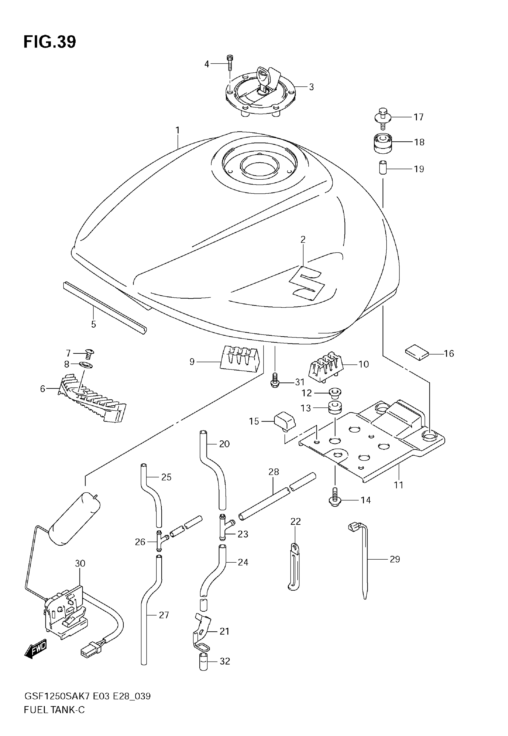 Suzuki GSF1250S (2009) FUEL TANK (MODEL K7/K8) Diagram