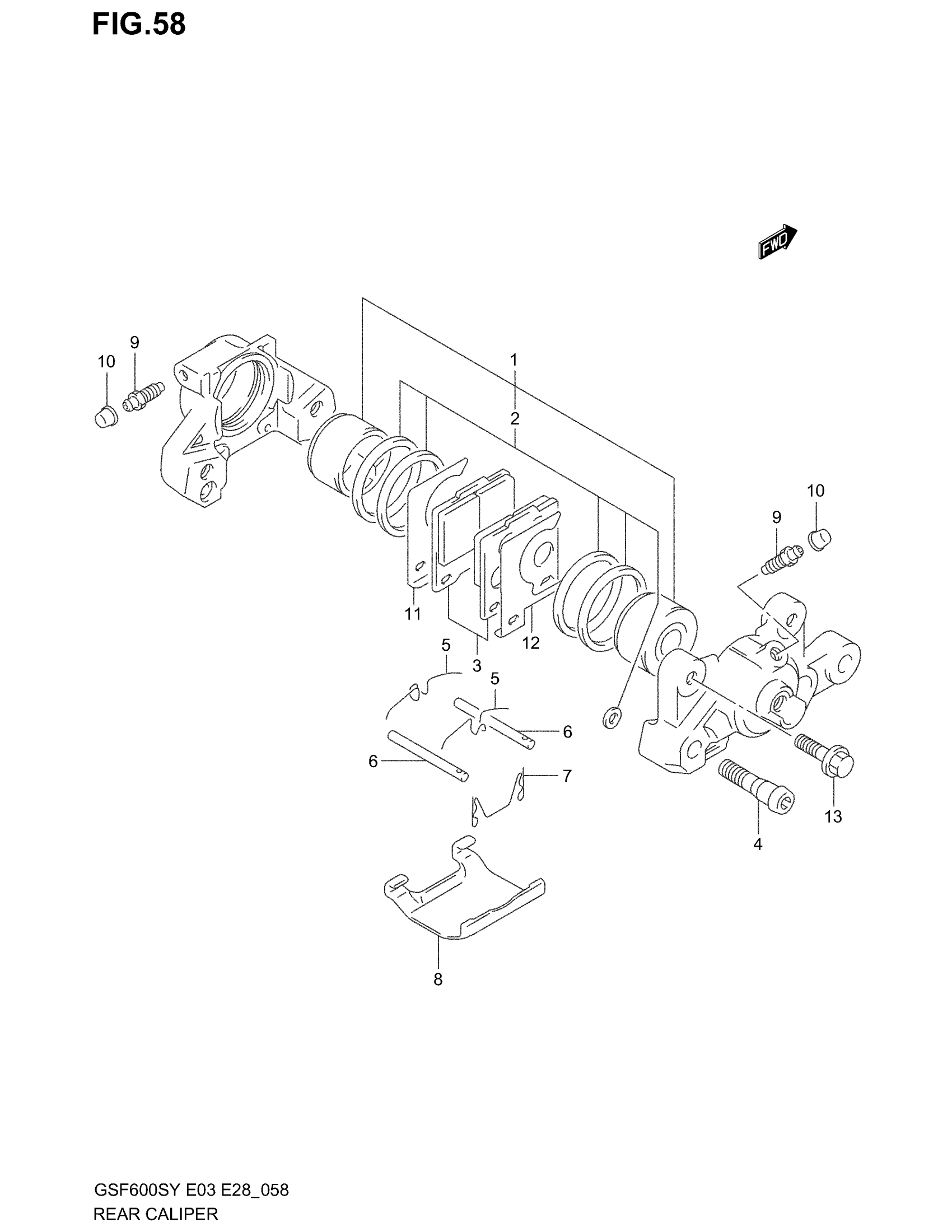 Suzuki GSF600S (2003) REAR CALIPER Diagram