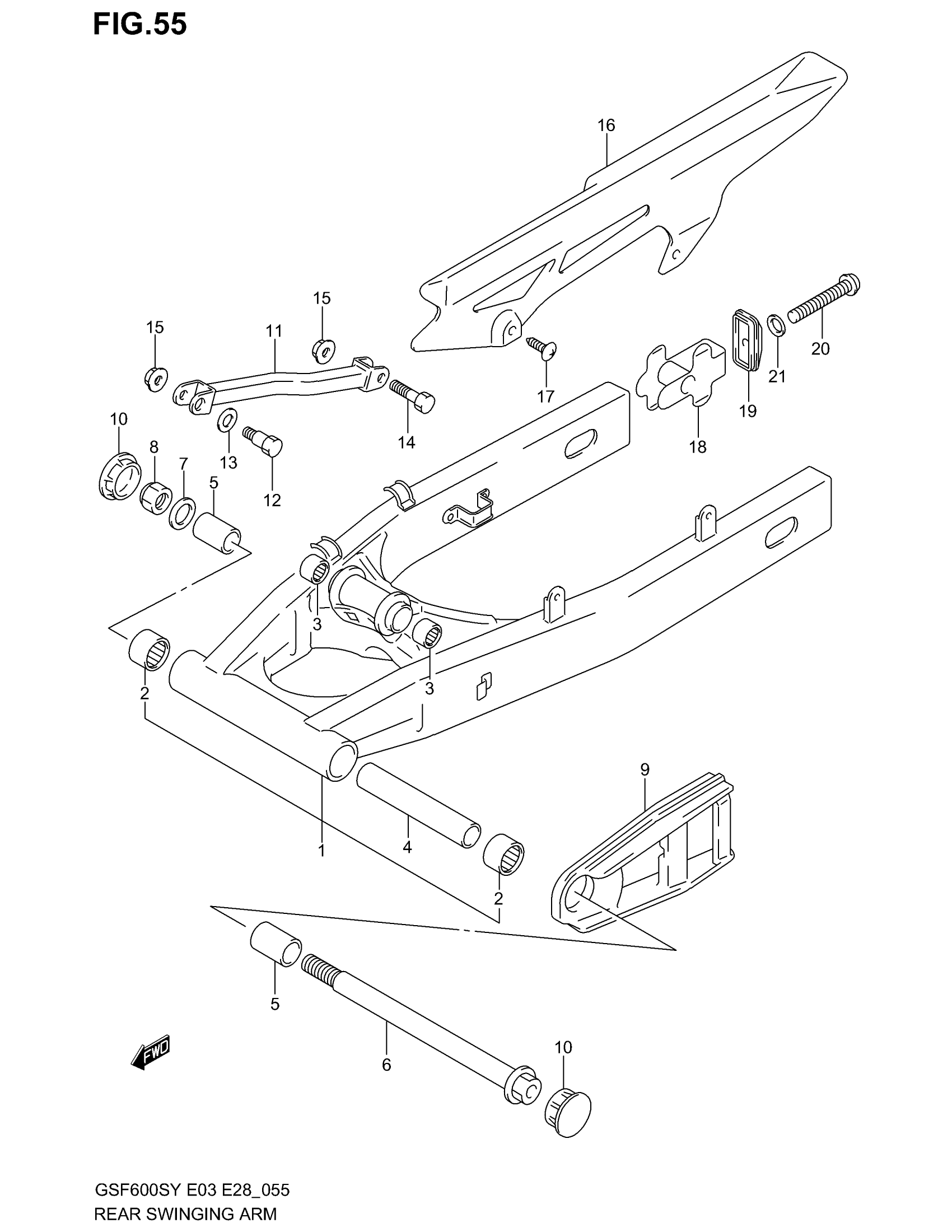 Suzuki GSF600S (2003) REAR SWINGING ARM Diagram