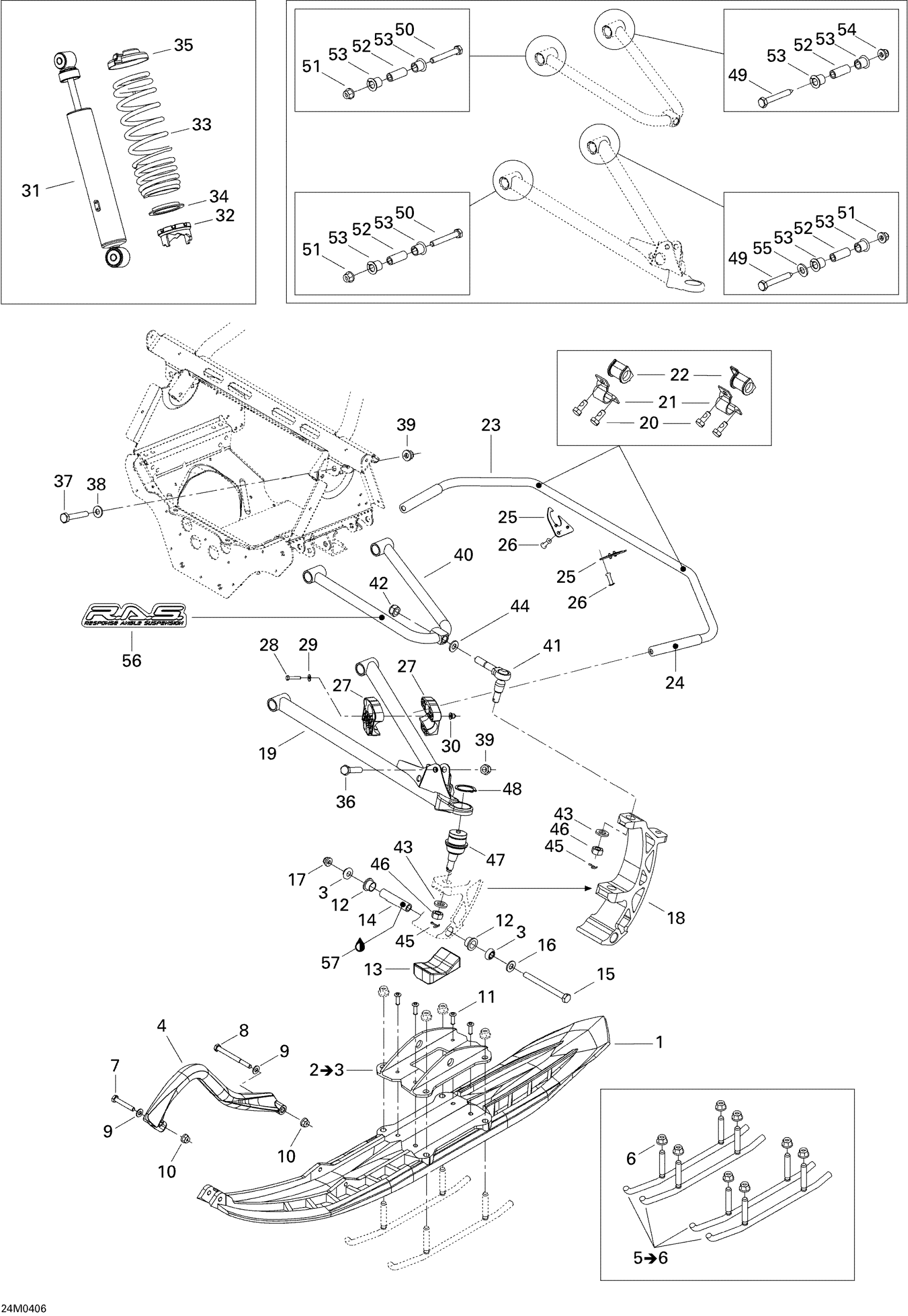 Ski-Doo GSX 500SS, 2004 Front Suspension And Ski Diagram