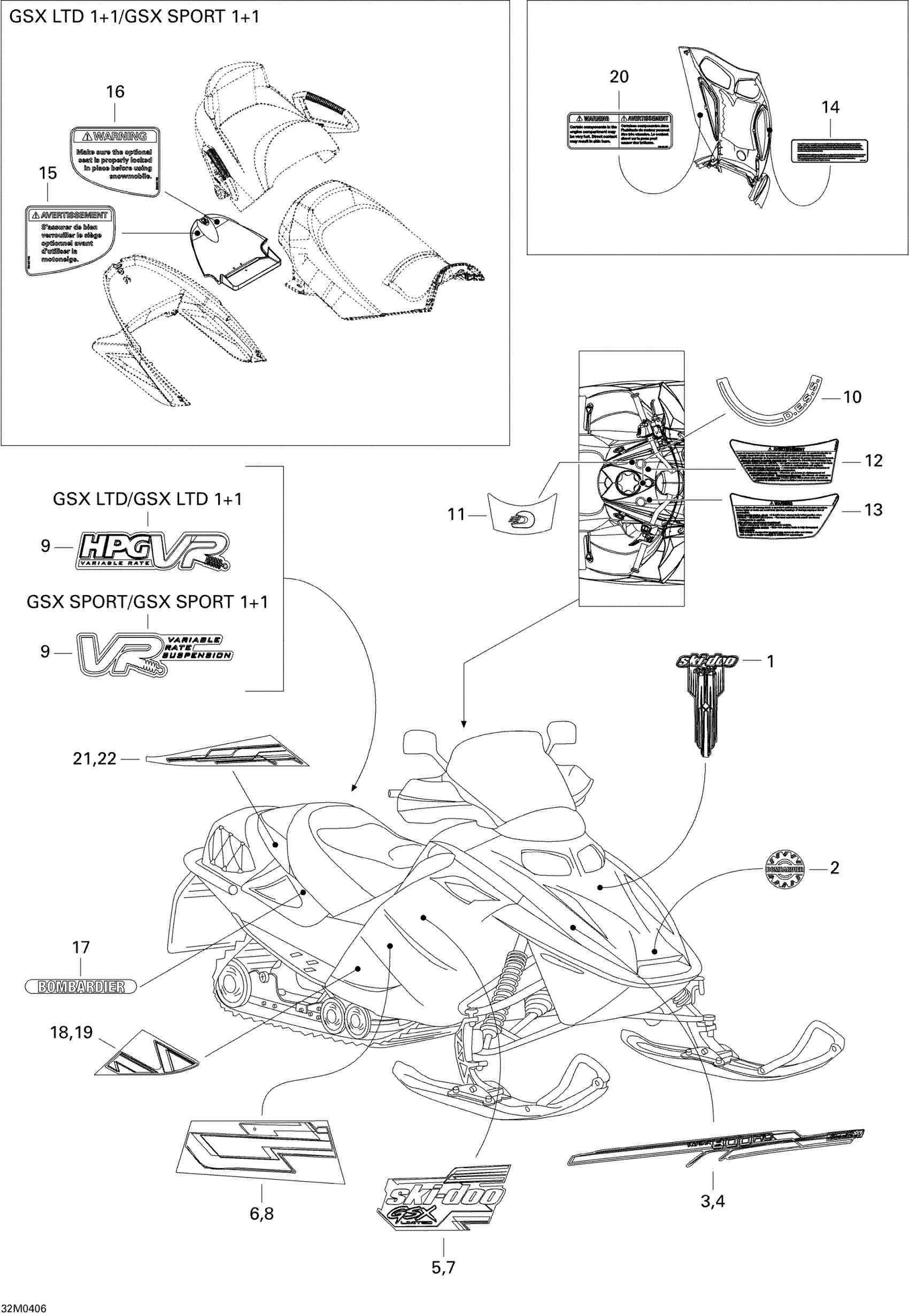 Ski-Doo GSX 500SS, 2004 Decals Diagram