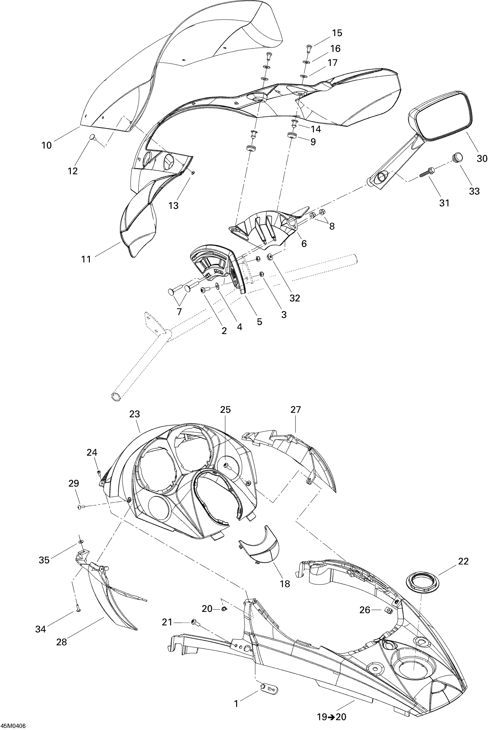 Ski-Doo GSX 500SS, 2004 Windshield And Console Diagram