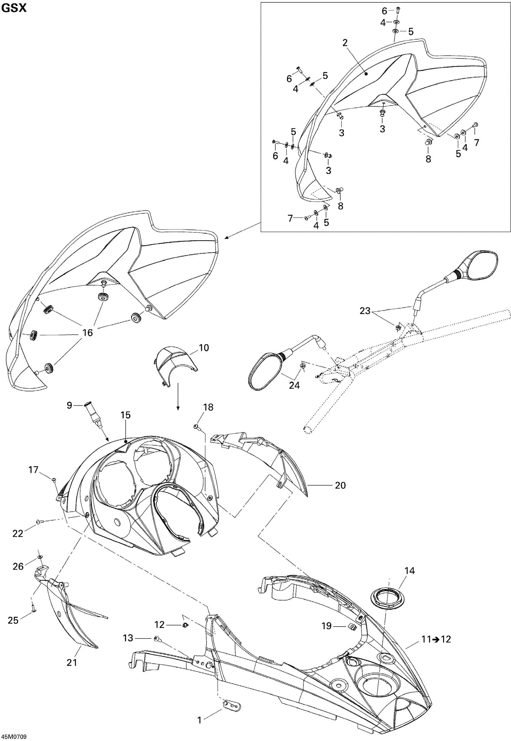 Ski-Doo GSX 550F, 2007 Windshield And Console Diagram